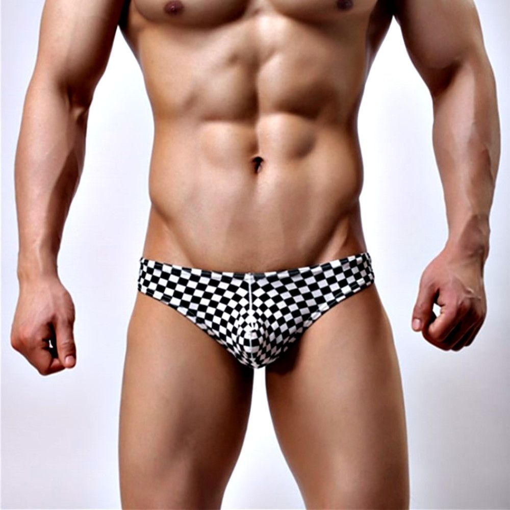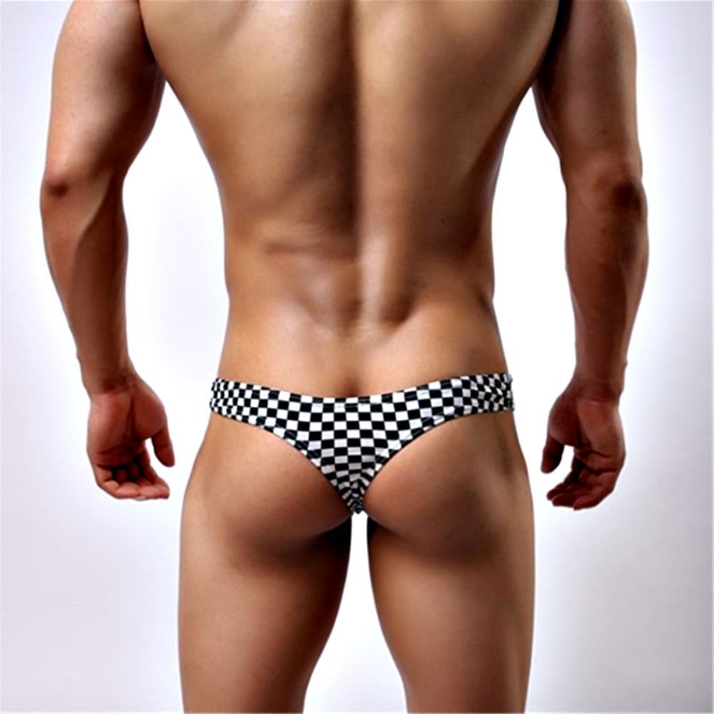 Эротичные черно-белые клетчатые трусы-тонги