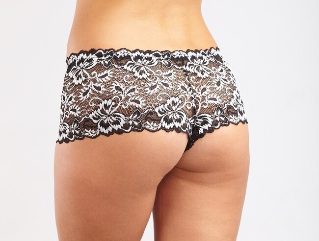 Шортики кружевные 'Ванильный Рай' с цветочным узором, черно-белые, размер 46, 100% полиэстер