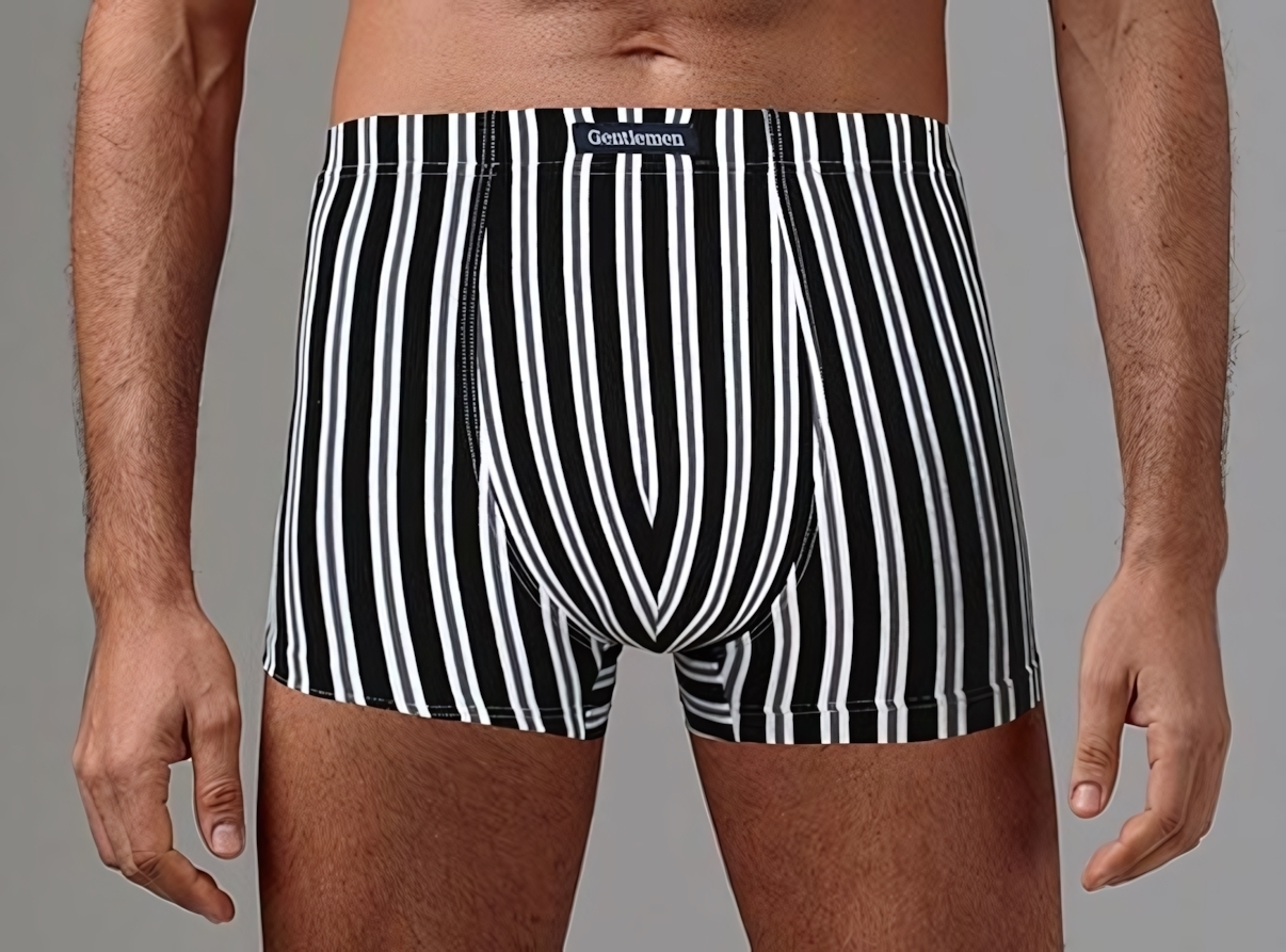 Черно-белые трусы-боксеры 'Gentlemen' созданы для тех, кто ценит классический дизайн и удобство. Благодаря сочетанию натурального хлопка и эластичной лайкры, они обеспечивают идеальную посадку и комфорт в течение всего дня.