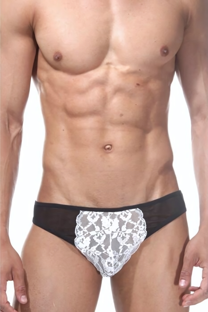 Трусы-слипы мужские черно-белые, размер L-XL, кружево и сетка