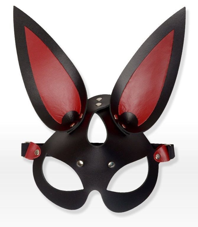 Маска кожаная 'BDSM accessories', черная с красным, с длинными ушами, натуральная кожа