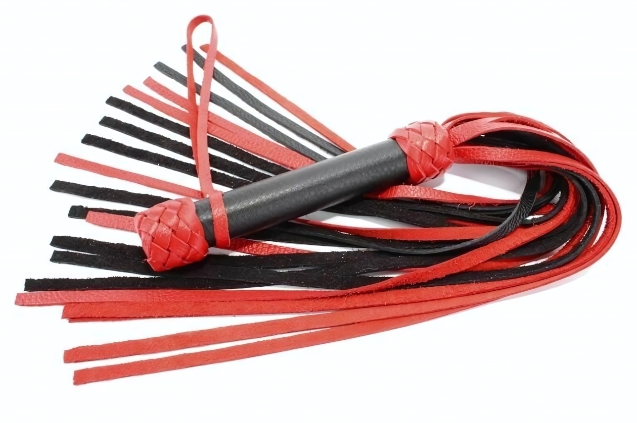 Эта плеть станет незаменимым аксессуаром для любителей БДСМ, позволяя вам погрузиться в мир новых ощущений и экспериментов. Изготовленная из натуральной кожи черного и красного цветов, она сочетает в себе стиль и функциональность, обеспечивая комфорт в использовании и долговечность.