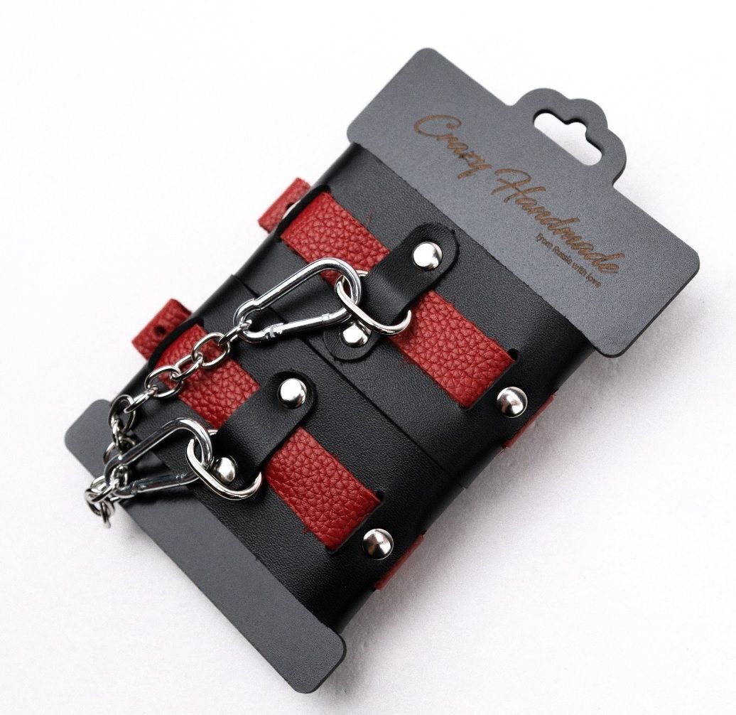 Размер: универсальный (регулируемый). Материал: натуральная кожа, металл. Цвет: черный с красным. Производитель: Crazy Handmade (Россия).