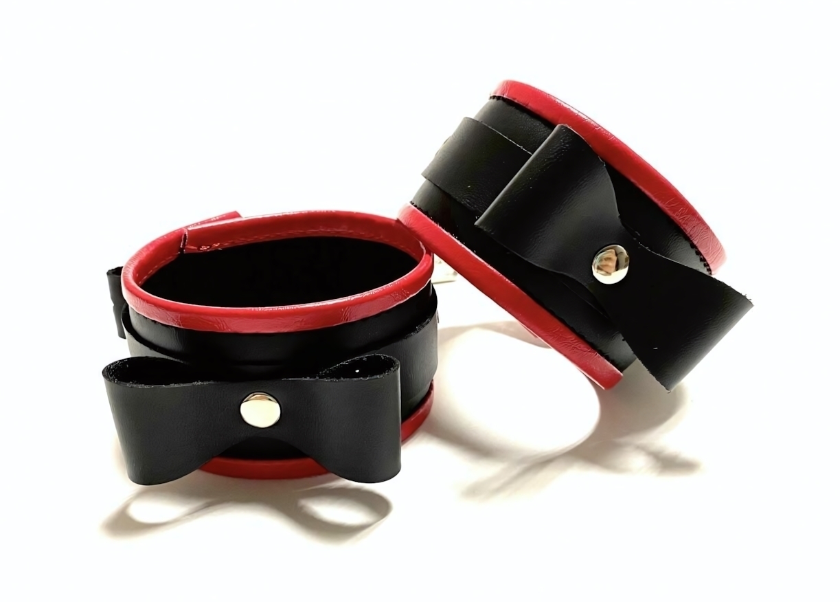 Эти наручники из эко-кожи с очаровательными бантиками станут идеальным аксессуаром для романтических игр. Черно-красное сочетание выглядит соблазнительно и стильно.
