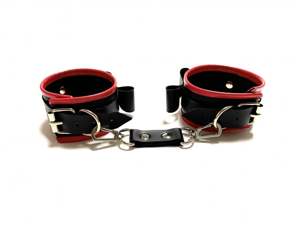 Наручники 'Бантиковый стиль', эко-кожа, черный/красный, регулировка 4,5см