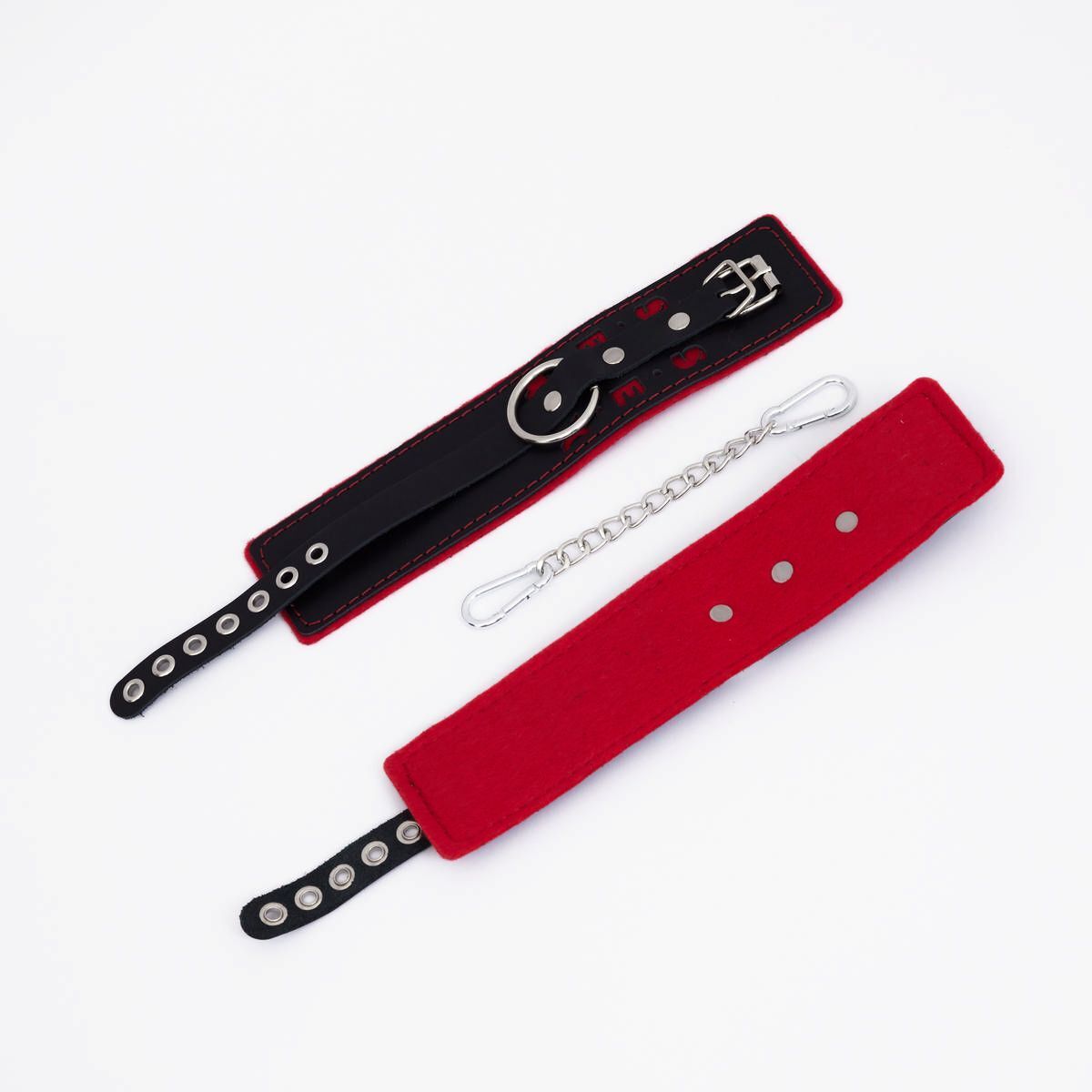 Оковы из натуральной кожи черные/красные, регулируемые 24-33см