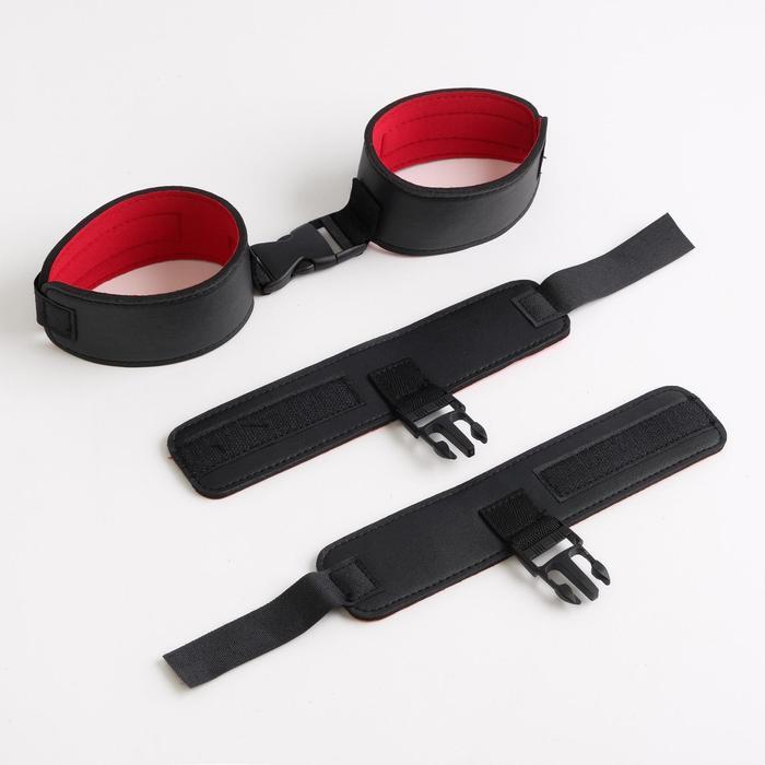 Почему стоит выбрать именно этот набор? Во-первых, он выполнен из качественного текстиля, что обеспечивает долговечность и комфорт в использовании. Во-вторых, черно-красная цветовая гамма придаст вашему досугу стильный и привлекательный вид. Набор подходит как для новичков, так и для опытных пользователей, желающих разнообразить свои интимные моменты.