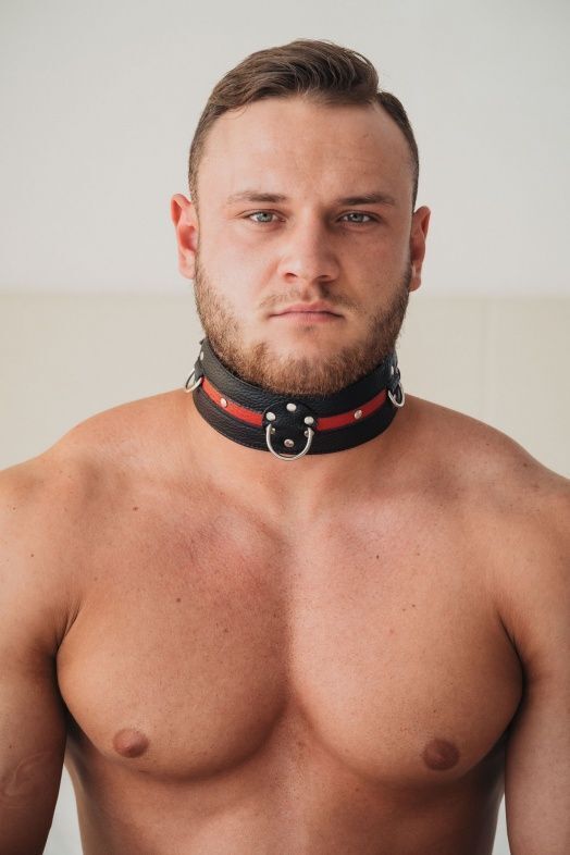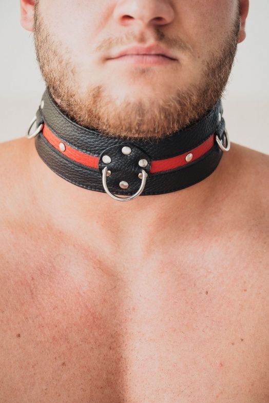 Стильный черно-красный кожаный ошейник для уверенных в себе