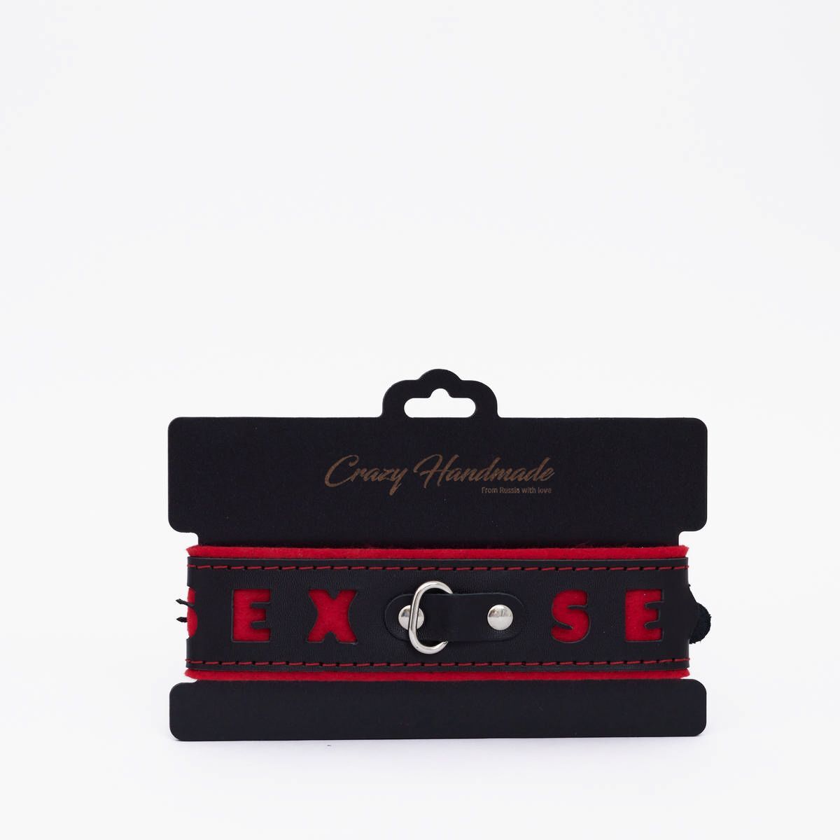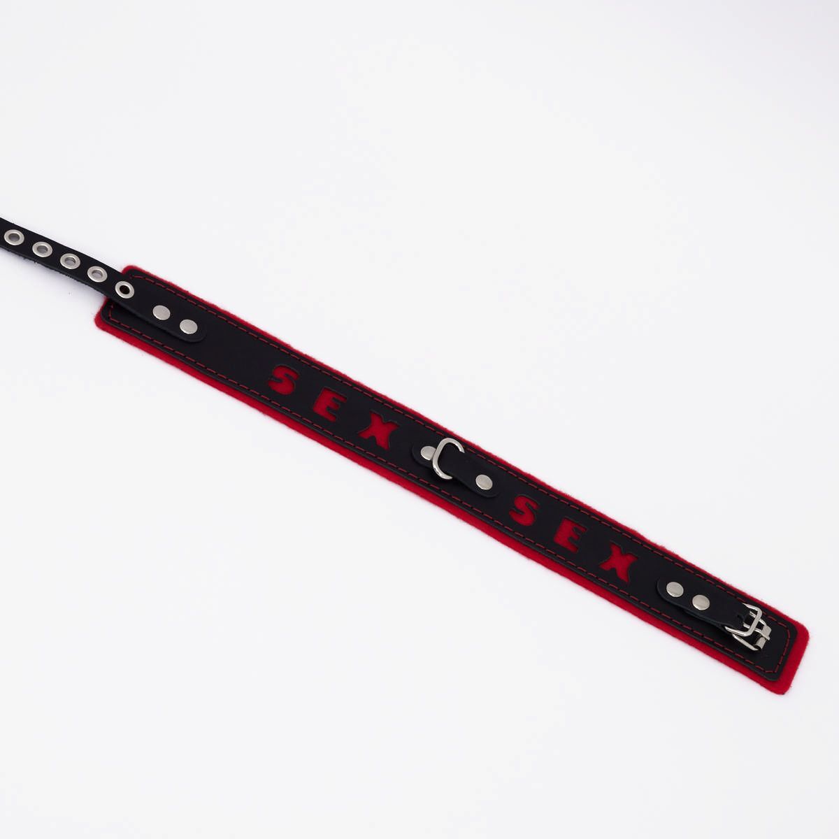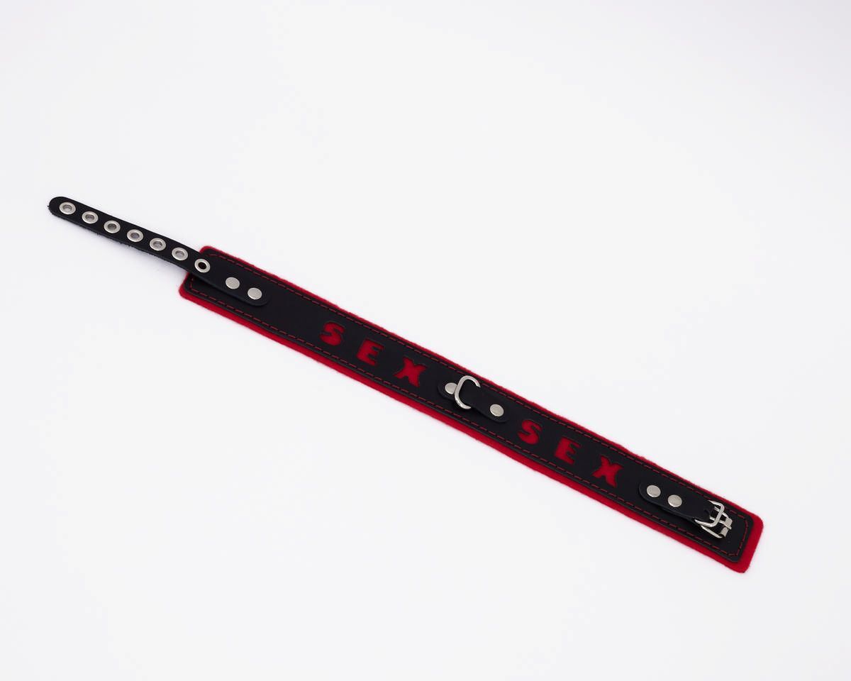 Ошейник кожаный черно-красный "SEX", 440мм, натуральная кожа с фурнитурой