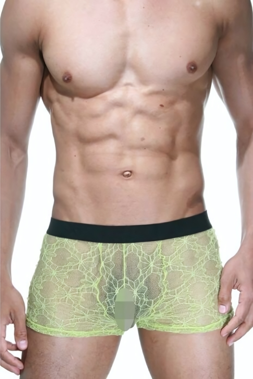 Эротичные черно-лаймовые трусы-боксеры из кружева