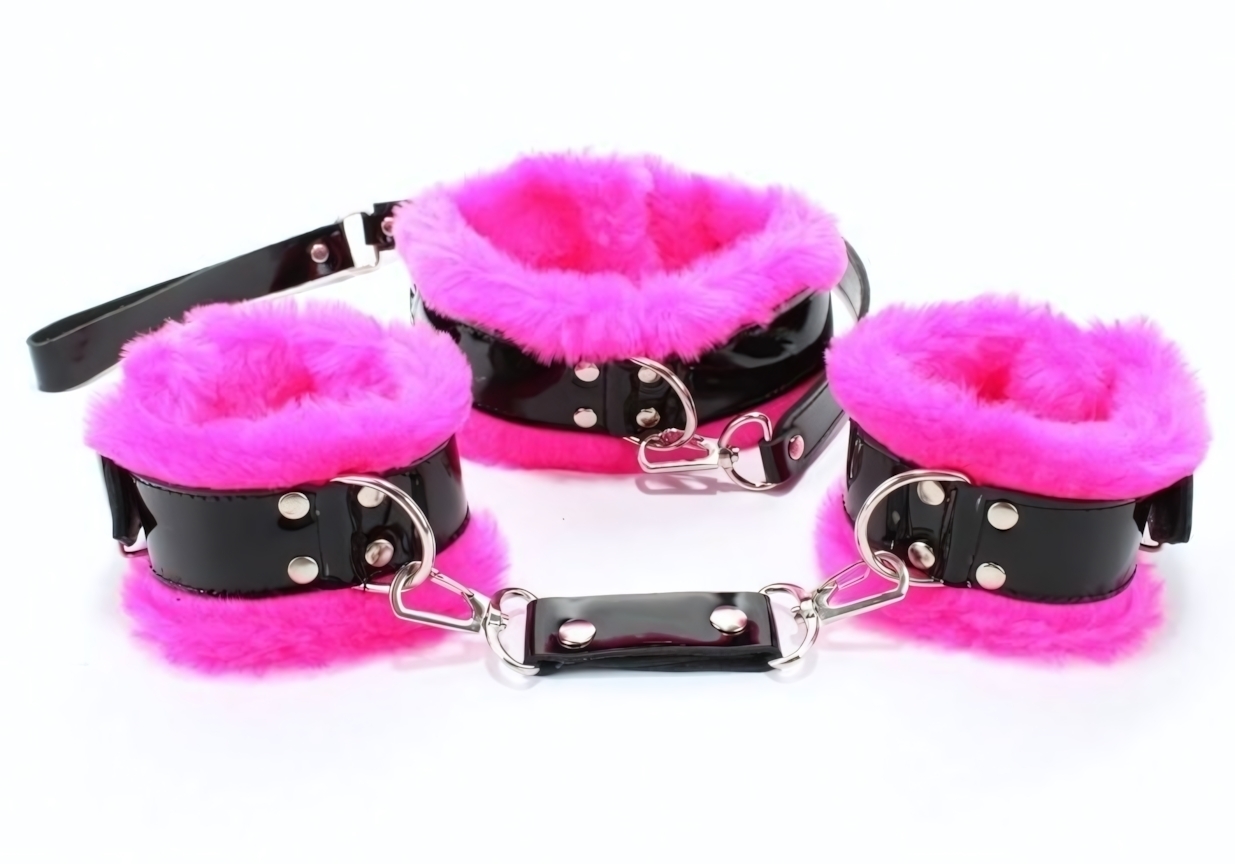 Погрузитесь в мир удовольствия с черно-розовыми наручниками и ошейником