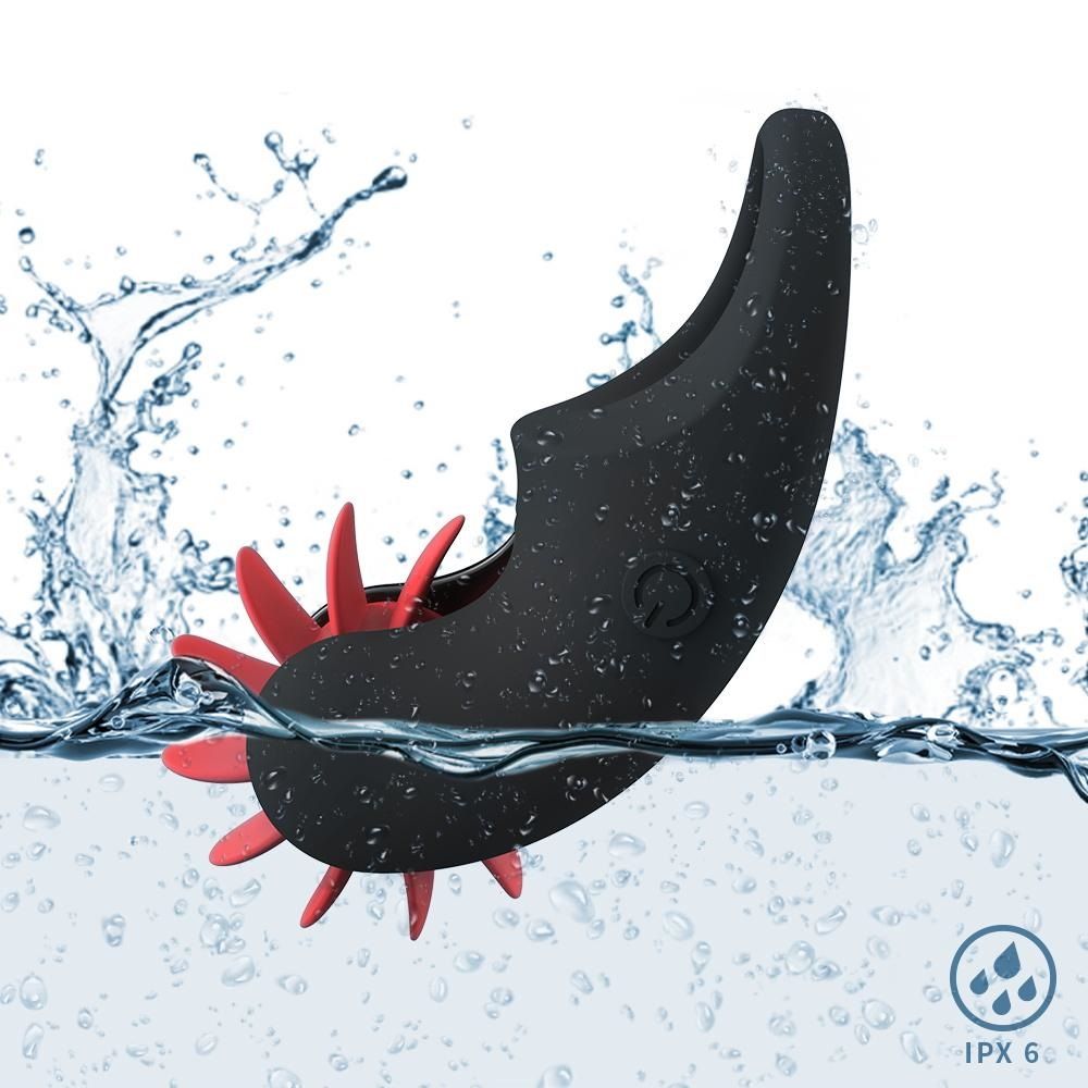 На утолщённой части кольца расположен красный элемент с множеством мягких лепестков. Они вращаются в 3 режимах, мягко воздействуя на чувствительные зоны партнёрши во время интимной близости. Переключение осуществляется кнопкой на корпусе, что делает использование простым и удобным.