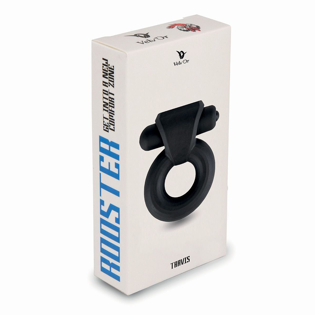 Эрекционное кольцо "Travis", черное, с вибрацией, диаметр 5.2см