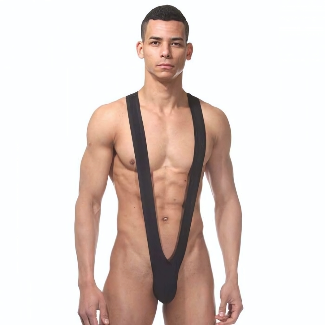 Мужское боди черное с глубоким вырезом, размер S-M, 85% полиэстер