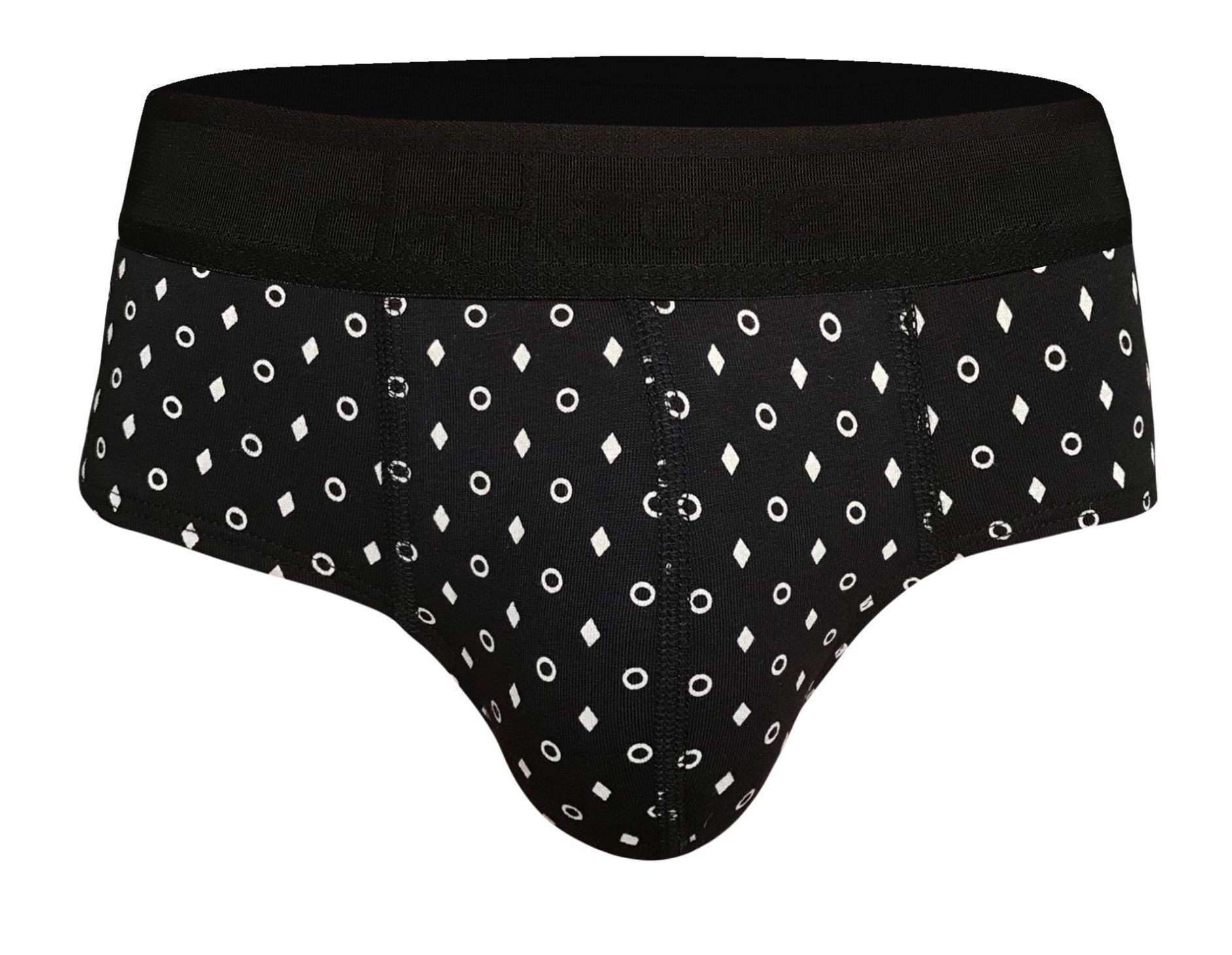 Черные мужские брифы 'Darkzone' с уникальным геометрическим принтом подчеркнут вашу индивидуальность и подарят непревзойденный комфорт в течение дня. Мягкий хлопковый материал с добавлением эластана обеспечивает идеальную посадку и долговечность.