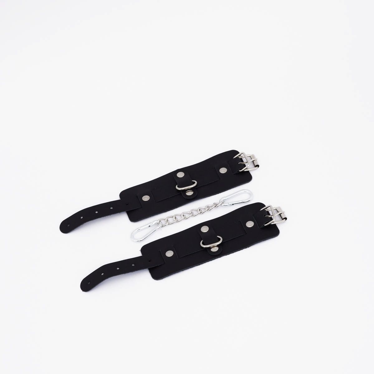 Наручники кожаные регулируемые с цепочкой, черные, натуральная кожа, хромированная фурнитура, размер 15-22 см