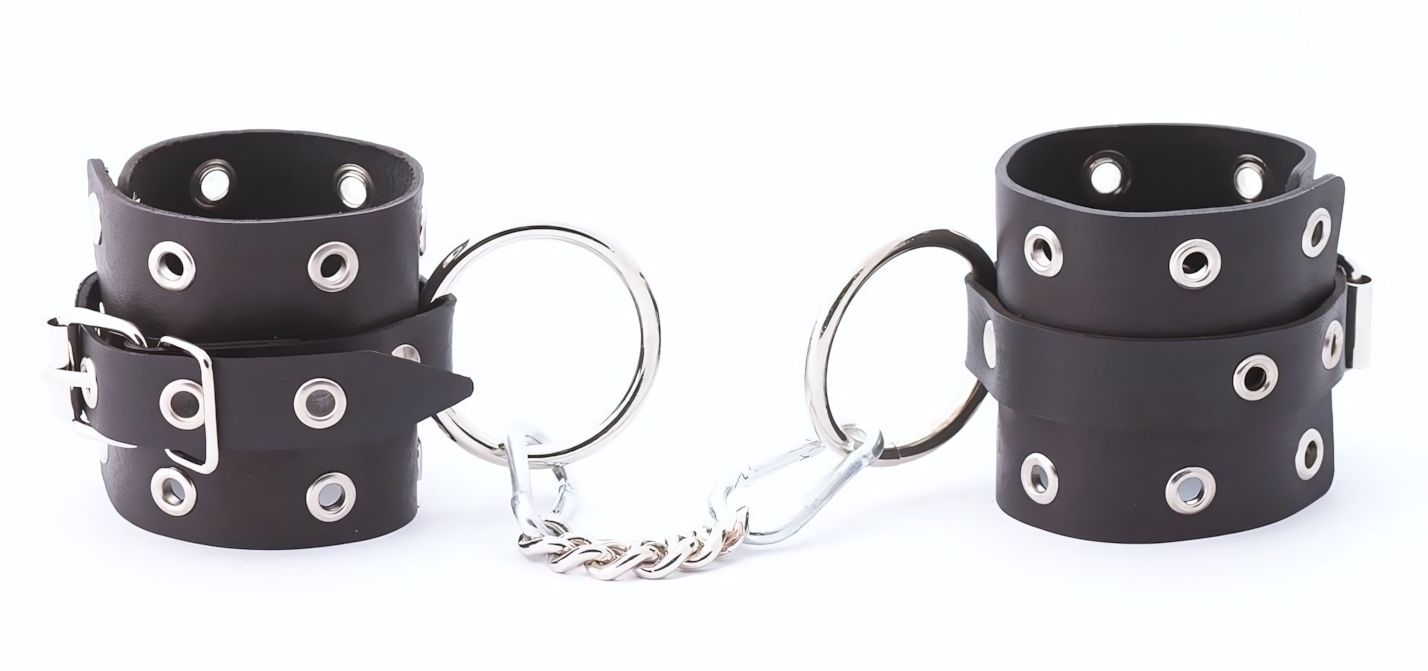 Черные кожаные наручники с металлическими люверсами – идеальный выбор для тех, кто хочет разнообразить свои отношения. Надежная фиксация и стильный дизайн делают их незаменимым аксессуаром для любителей экспериментов.