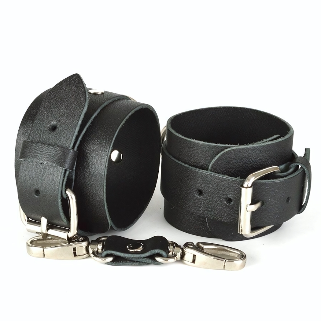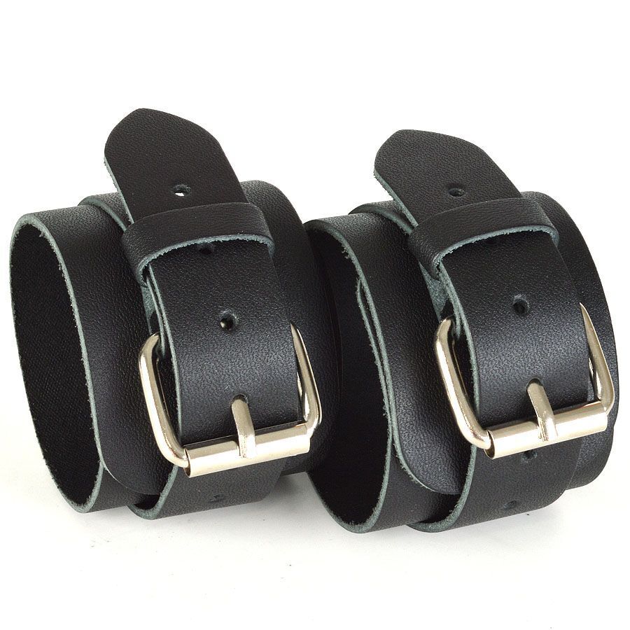 Наручники кожаные IDEAL с металлическими пряжками, черные, регулируемые, 31 см