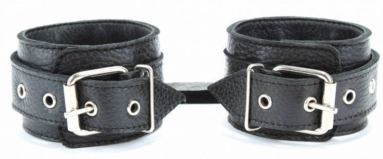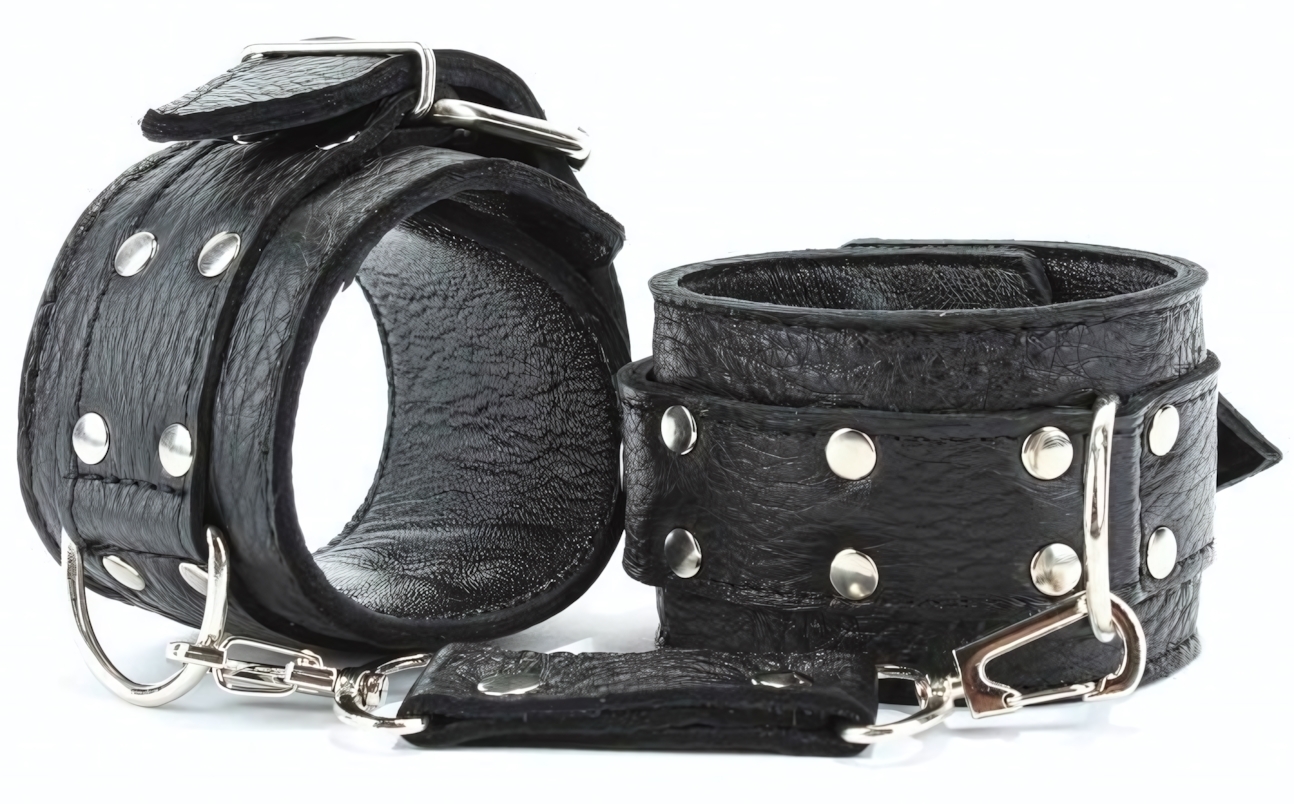 Наручники кожаные регулируемые с металлическими заклепками, карабин, обхват 16-25 см, черные, «БДСМ Арсенал»