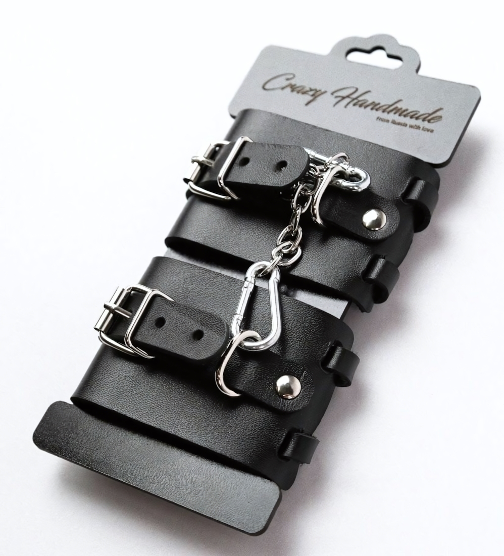 Черные кожаные наручники Crazy Handmade созданы для тех, кто ценит качество и комфорт в интимных играх. Натуральная кожа обеспечивает мягкость и долговечность, а надежная фурнитура гарантирует безопасность.