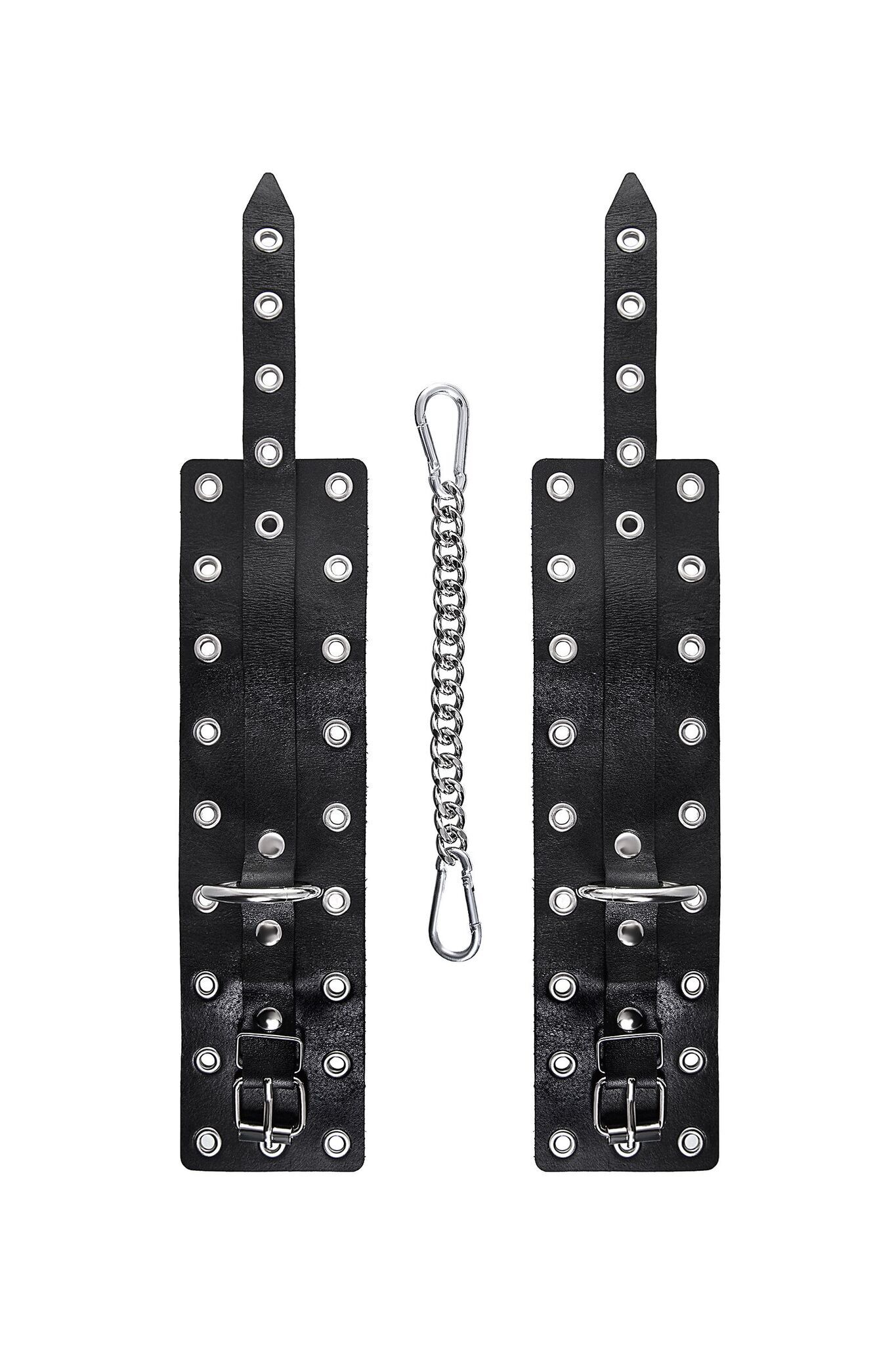 Наручники кожаные черные с цепочкой, регулируемые, металлические люверсы, натуральная кожа, универсальный размер