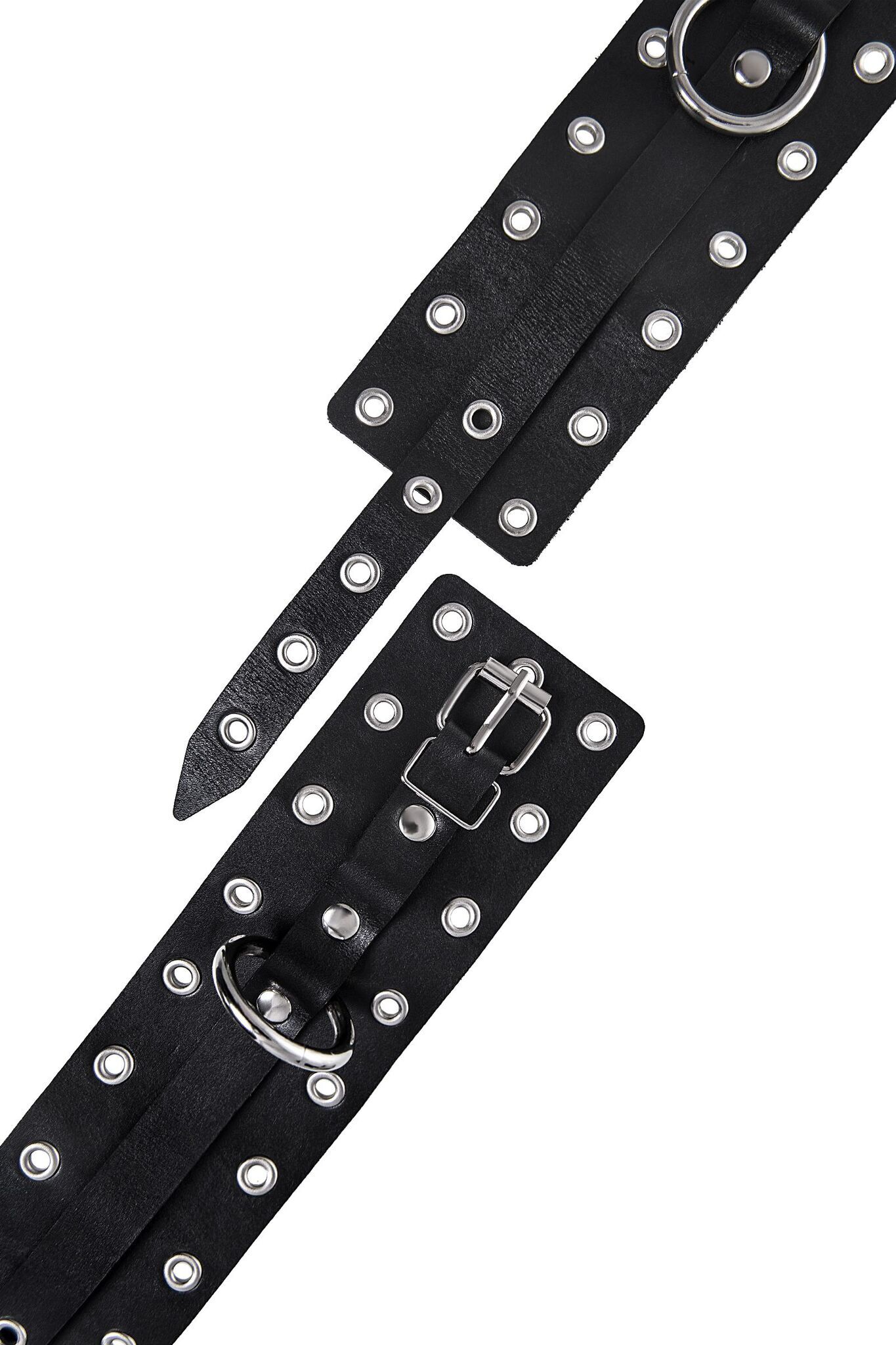 Универсальный аксессуар, сочетающий эстетику и функциональность: регулируемые манжеты из натуральной кожи с металлической фурнитурой станут идеальным дополнением для взрослых игр. Контрастная красная строчка подчеркивает изысканность дизайна, а прочные люверсы гарантируют надежную фиксацию.