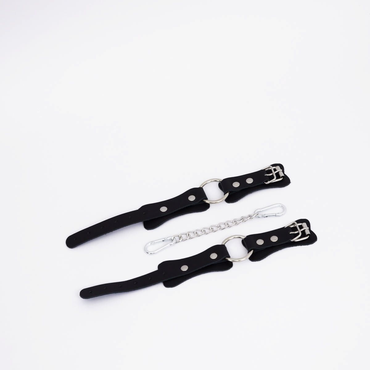 Универсальный комплект из натуральной кожи с металлической фурнитурой сочетает функциональность и эстетику. Идеально подходит для ценителей качества и лаконичного дизайна в интимной сфере.