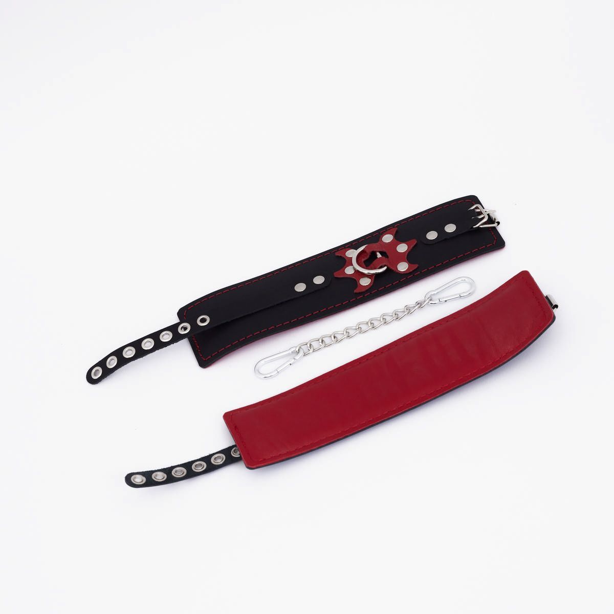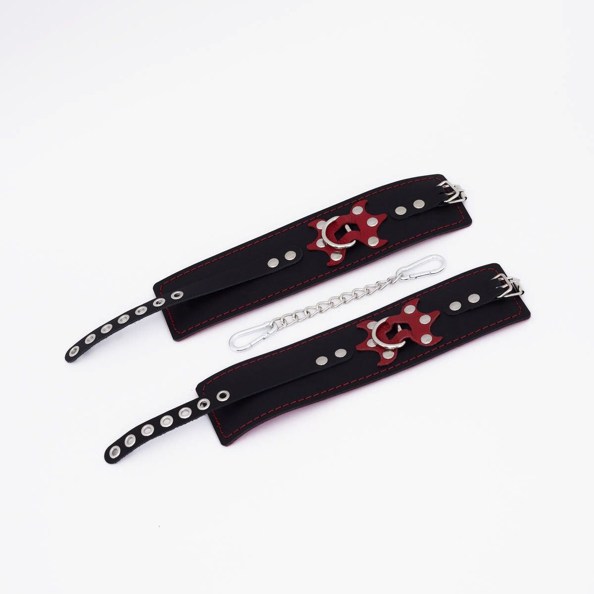 Оковы кожаные 'Crazy Handmade', черные с красным декором, 25.5х7см