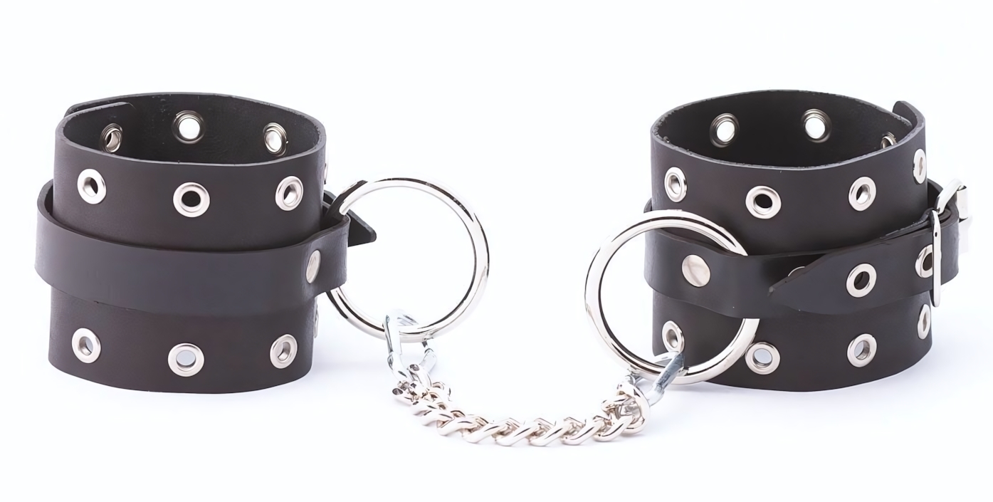 Наручники кожаные с люверсами, натуральная кожа, черный цвет, ширина 6.5 см, длина 25 см
