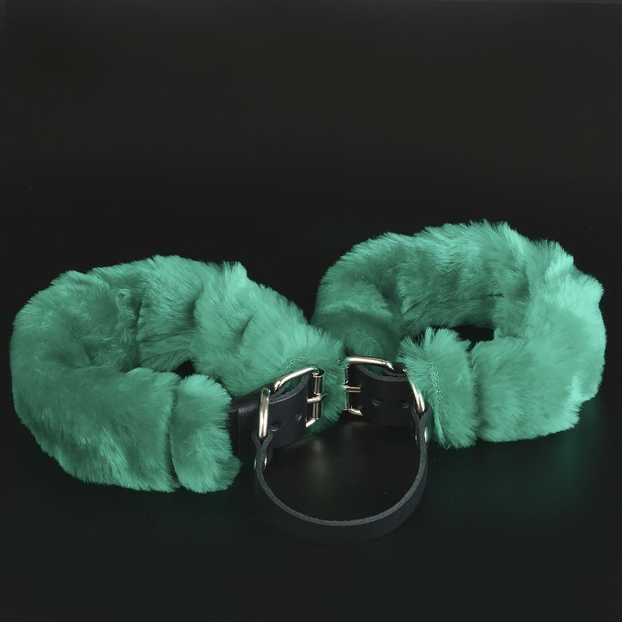 Оковы кожаные 'BDSM accessories', черные с зеленой опушкой, регулируемые