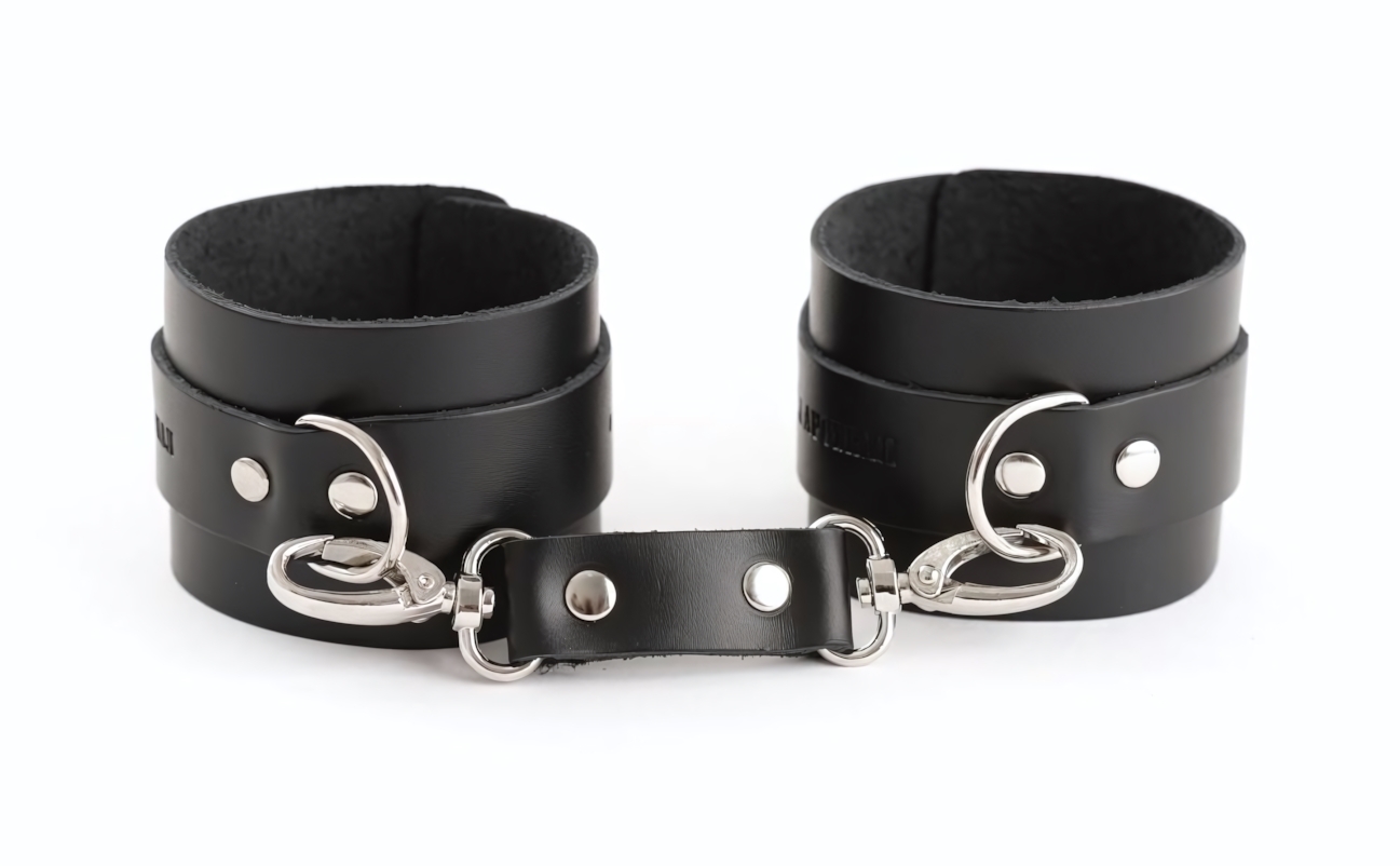 Эти черные кожаные оковы со сцепкой созданы для тех, кто ищет новые грани удовольствия и комфорта в своих эротических играх. Изготовленные из натуральной кожи, они обеспечивают надежную фиксацию и долговечность, что делает их идеальным выбором для любителей BDSM. Оковы имеют лаконичный и стильный дизайн, который легко впишется в любую обстановку.