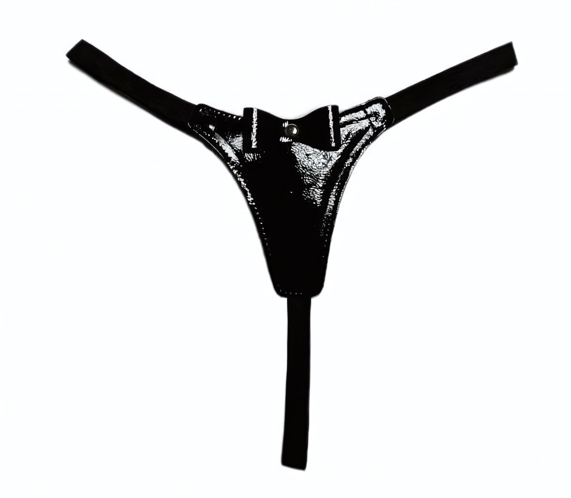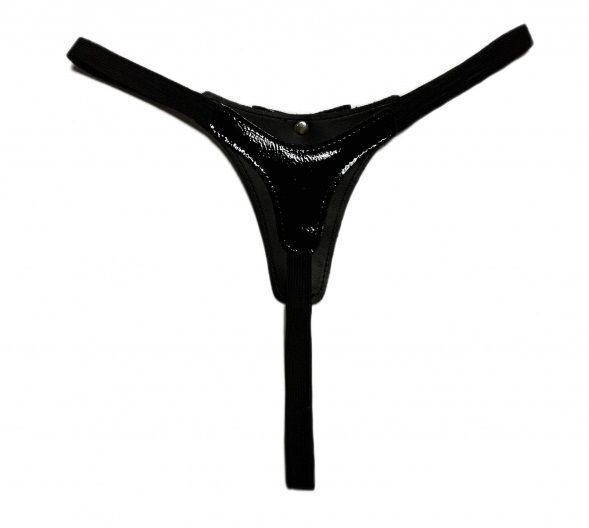 Размер: S-M; Цвет: черный; Материал: искусственная кожа. Эти стринги станут отличным дополнением к вашему гардеробу и помогут создать незабываемый образ для любой ситуации.