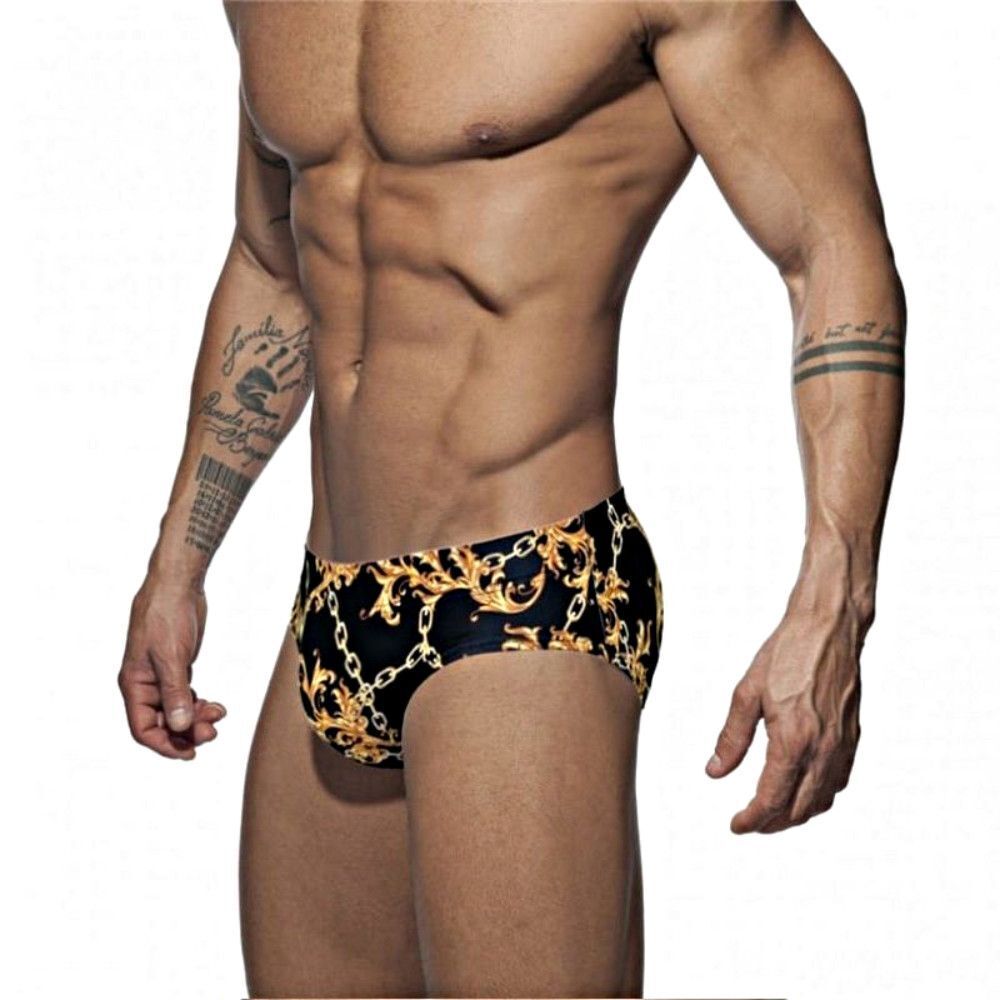 Эти черные мужские плавки с уникальным принтом в виде цепей и завитков обеспечат вам комфорт и уверенность на пляже или в бассейне. Изготовленные из высококачественного материала, состоящего на 80% из полиамида и 20% из эластана, они идеально облегают фигуру, подчеркивая спортивное телосложение.