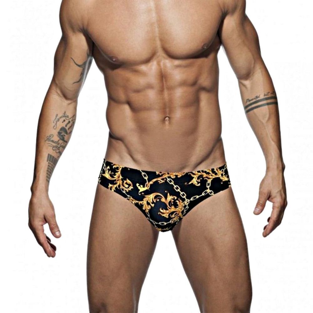 Стильные черные мужские плавки с принтом цепей