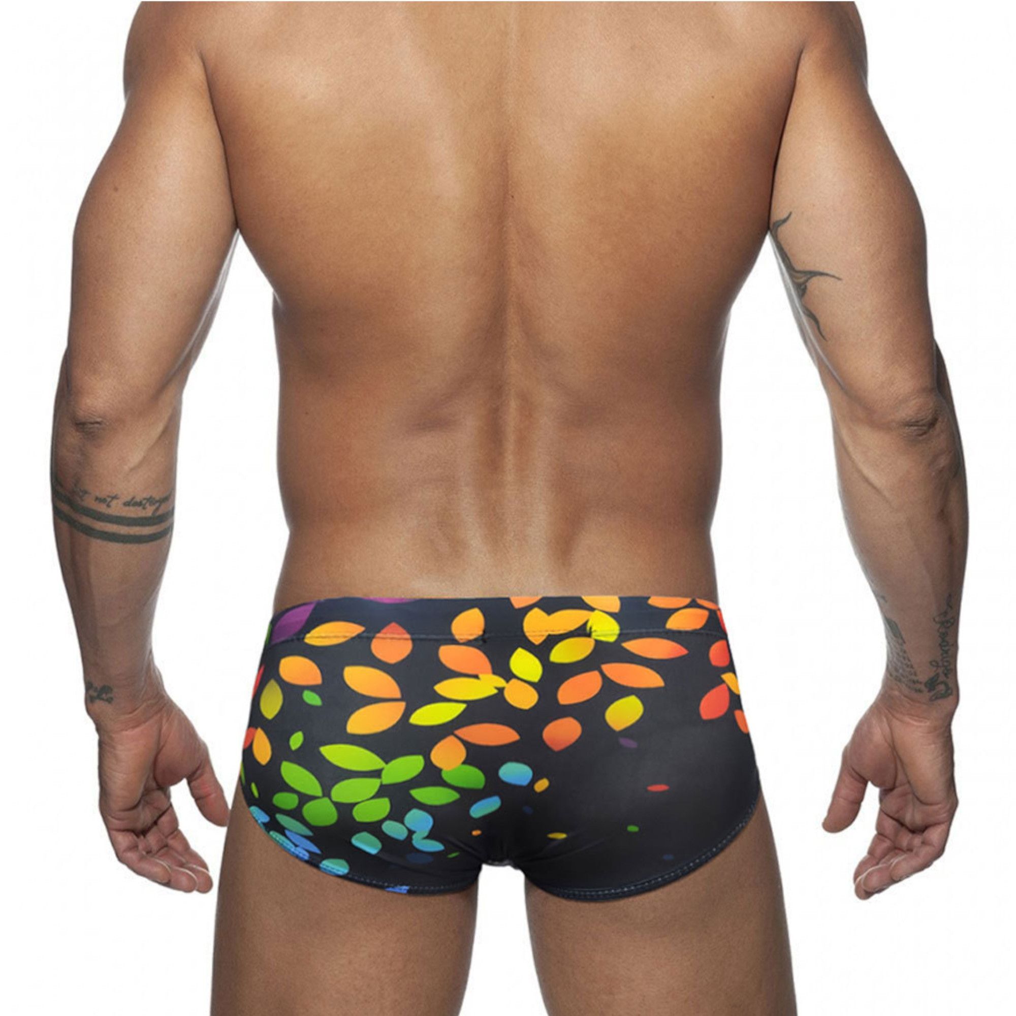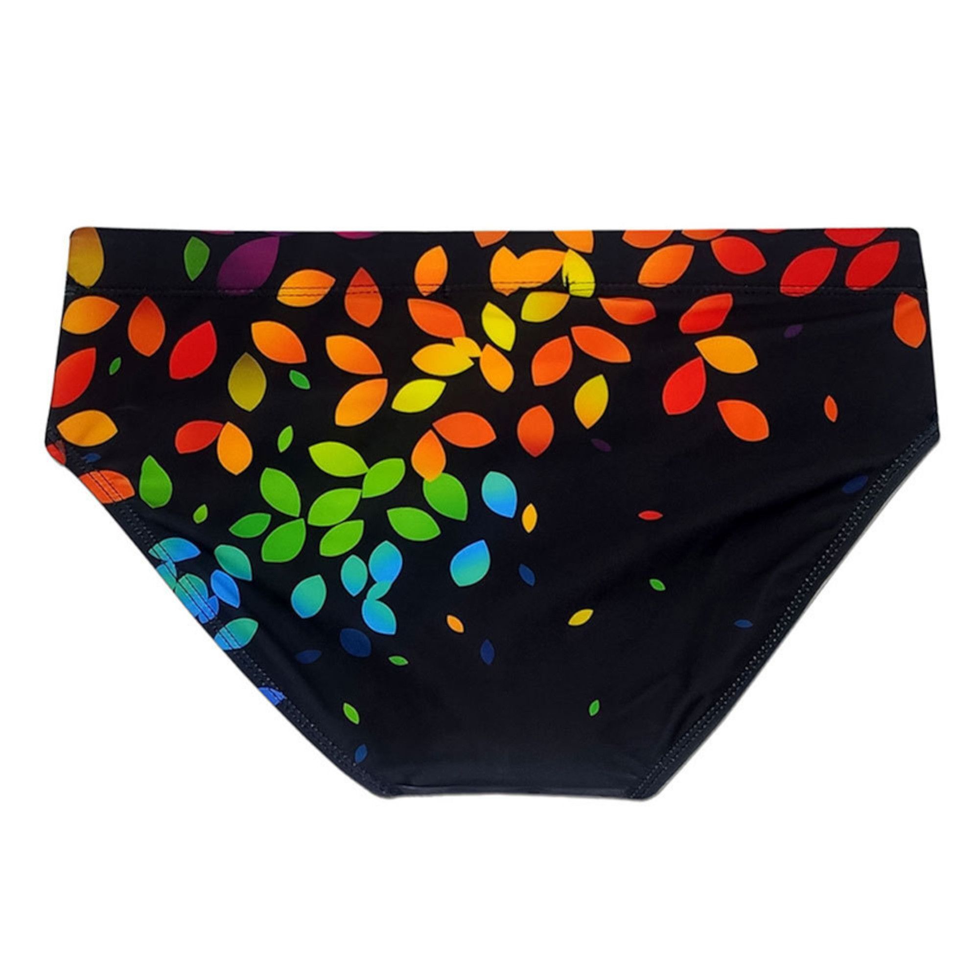 Эти плавки с классической формой и низкой талией подходят для мужчин с атлетическим телосложением. Они легко сочетаются с различными купальными аксессуарами и могут использоваться как для активного отдыха, так и для расслабляющего времяпрепровождения у воды. Яркий узор в виде цветных листьев добавляет оригинальности и подчеркивает индивидуальность владельца.