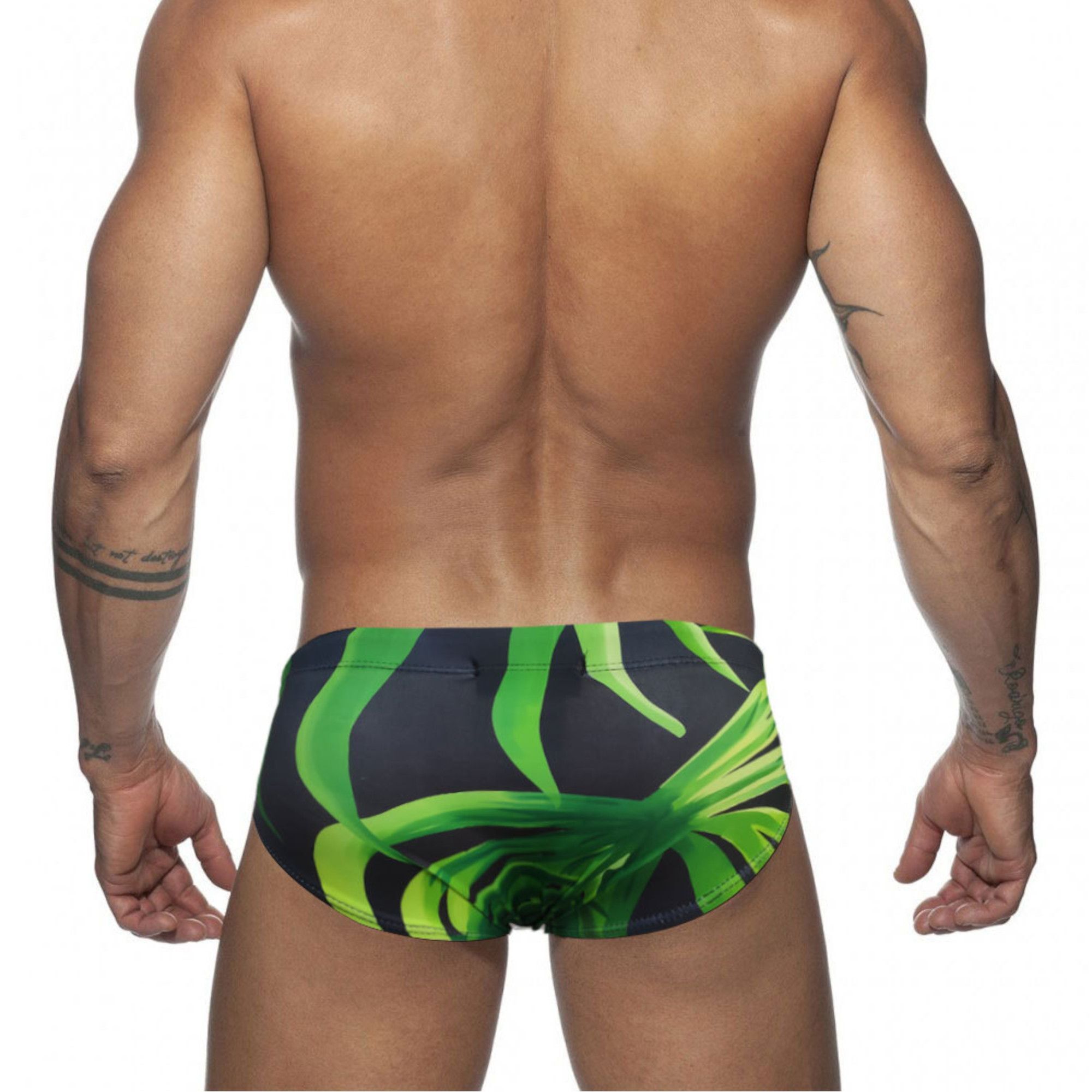 Черные мужские плавки с зеленым растительным принтом подчеркнут вашу индивидуальность и обеспечат комфорт на пляже или у бассейна. Модель 'Romeo Rossi' создана специально для мужчин, ценящих качество и современный дизайн.