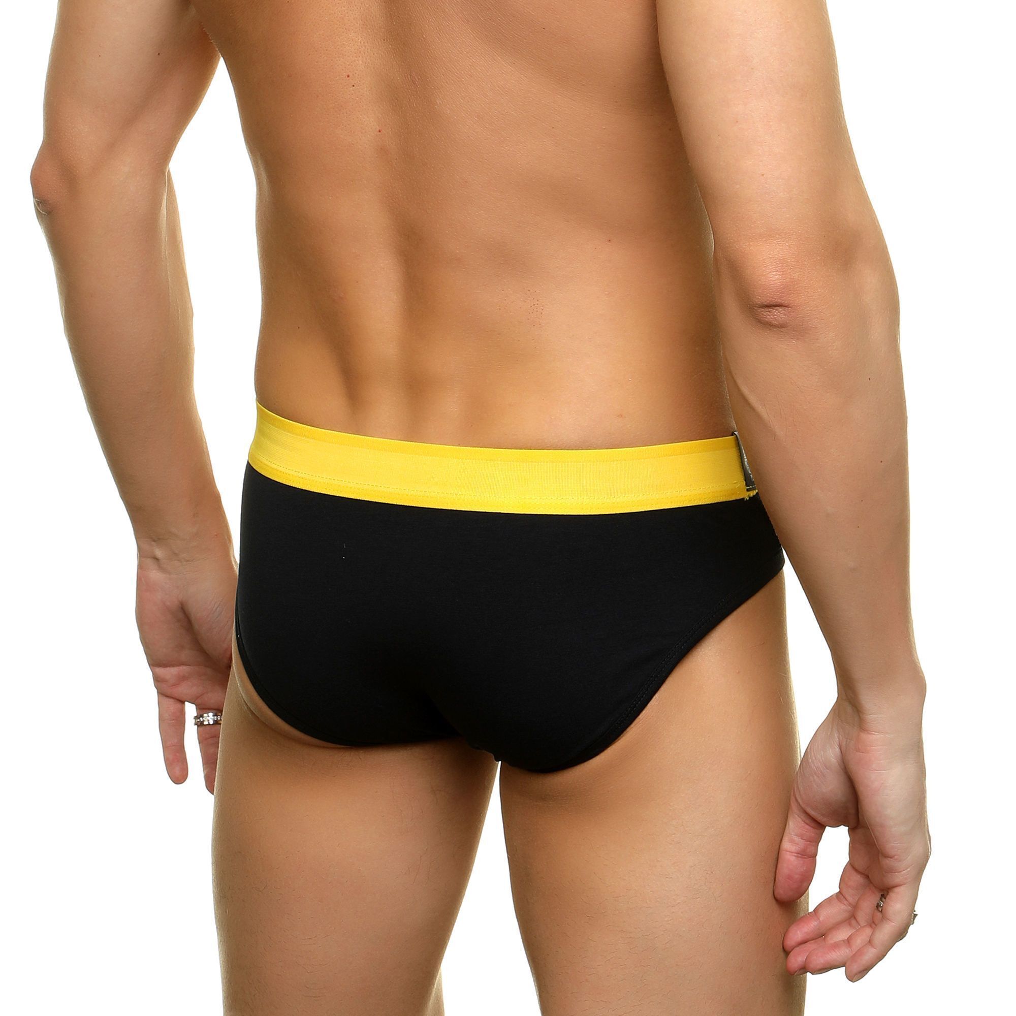 Почему стоит выбрать именно эти трусы? Во-первых, они выполнены из высококачественных материалов, что гарантирует долговечность и износостойкость. Во-вторых, черный цвет с желтой резинкой делает их универсальными для любого гардероба. В-третьих, трусы легко стираются и быстро сохнут, что экономит ваше время.