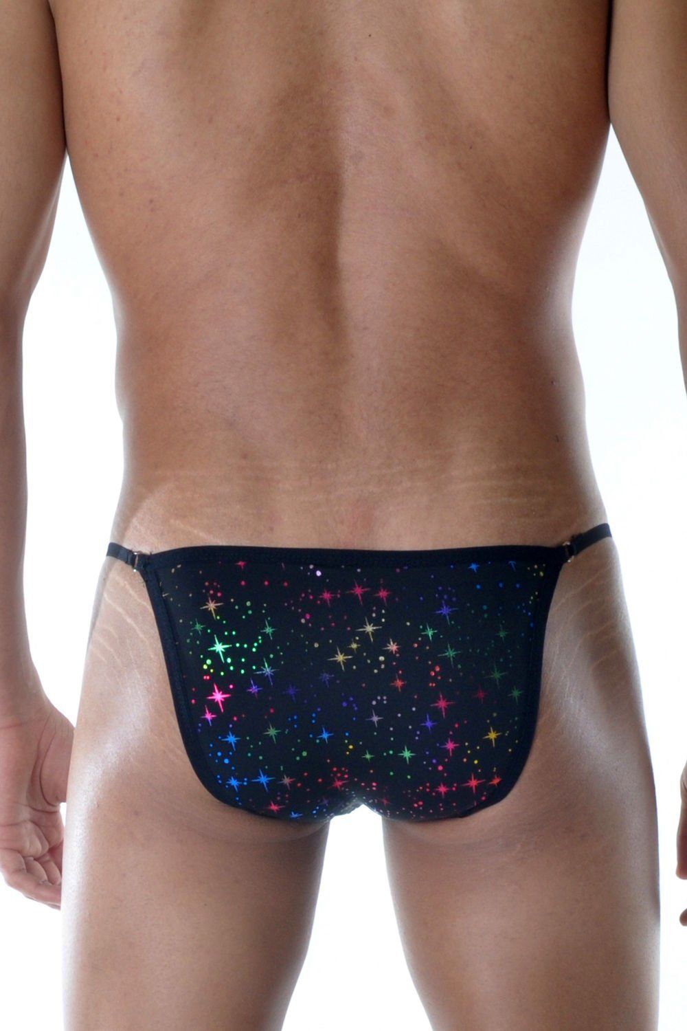 Эротичные черные мужские трусы-танга с блестящими звездочками