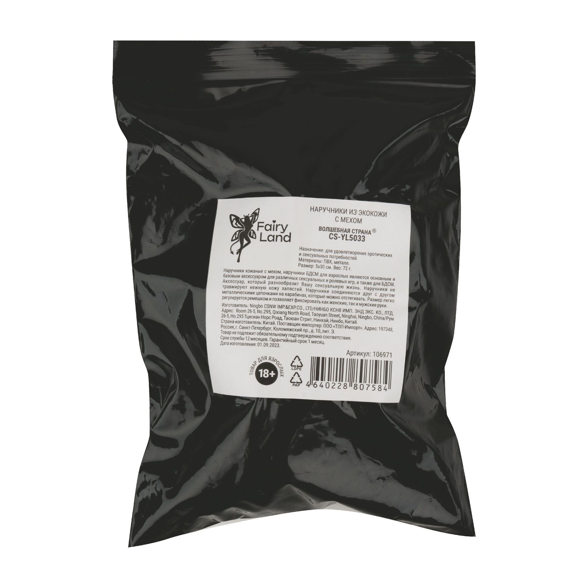 Наручники из эко-кожи с мехом, черные, регулируемые, 5см ширина