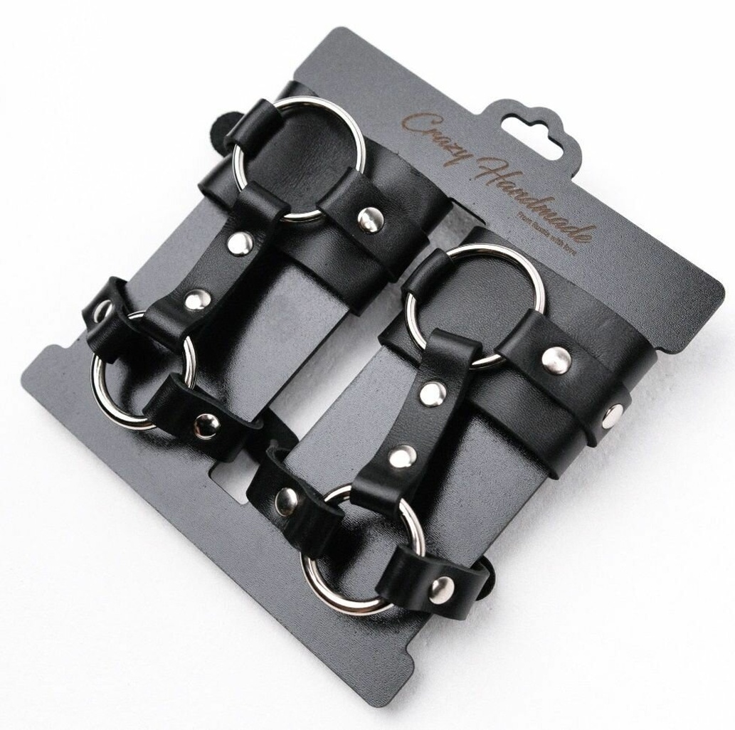 Наручники для кисти "Carry Hound" из натуральной кожи, черные, с металлическими заклепками и кольцами