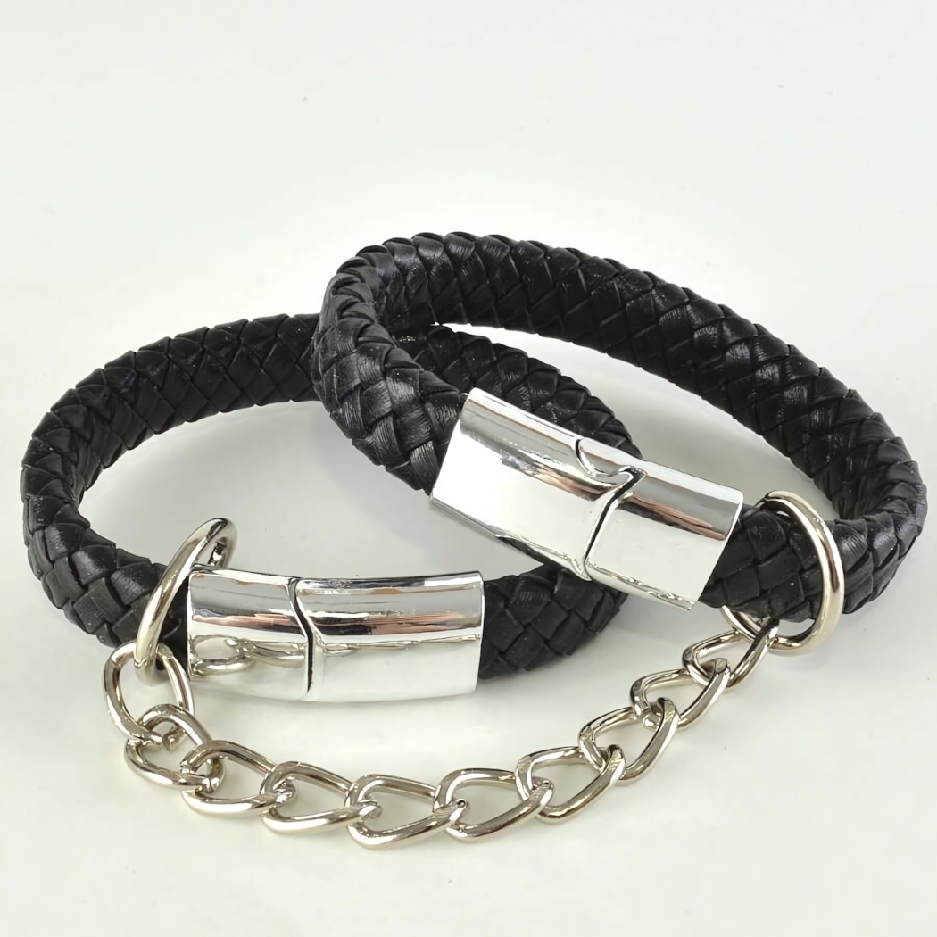Эргономичные наручники из плетеного винила сочетают деликатность и надежность. Магнитная система фиксации обеспечивает быстрое застегивание и регулировку без давления на кожу — идеально для продолжительного ношения.