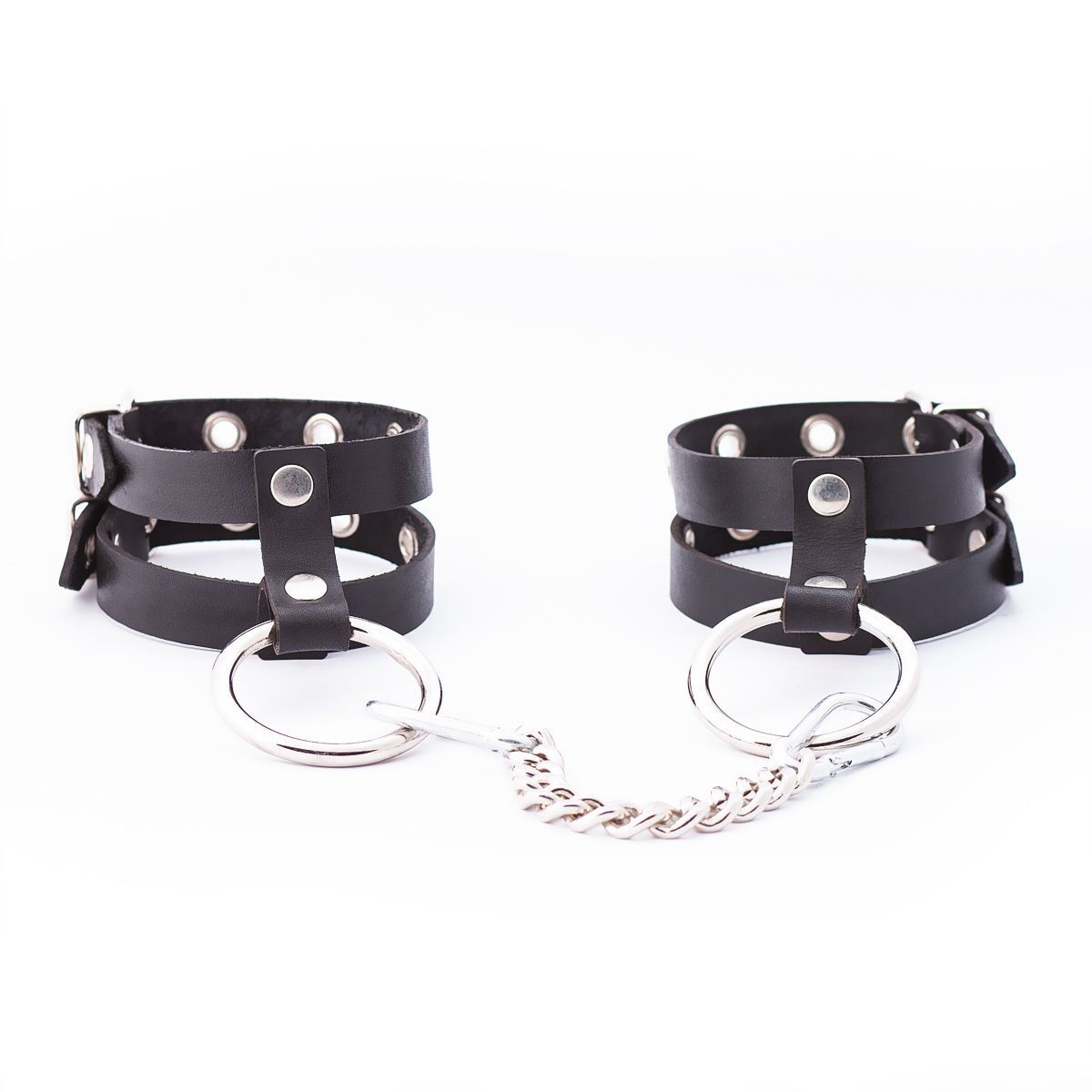 Черные кожаные оковы станут вашим надежным спутником в мире чувственных экспериментов. Минималистичный дизайн сочетается с практичностью использования, что делает их универсальным выбором.