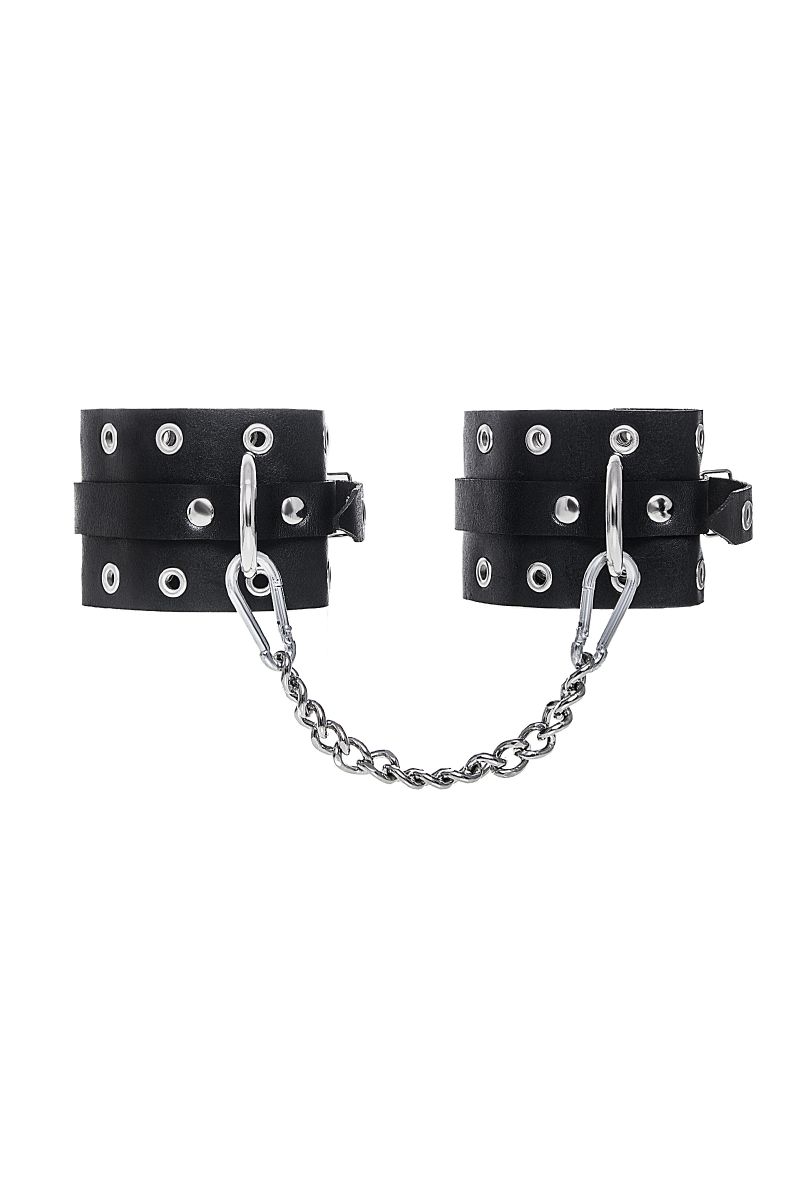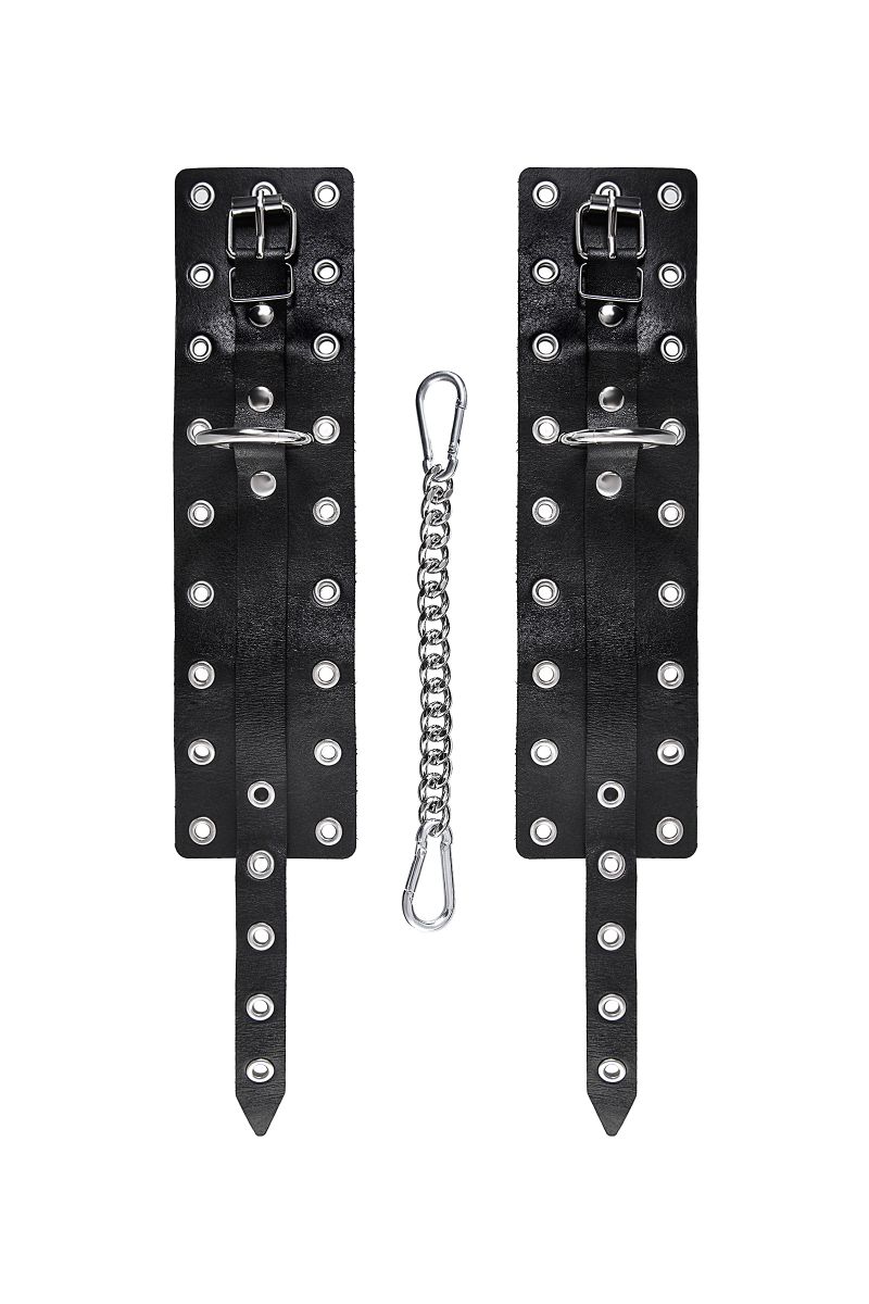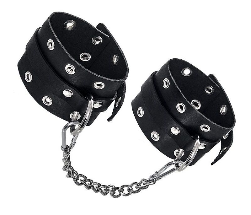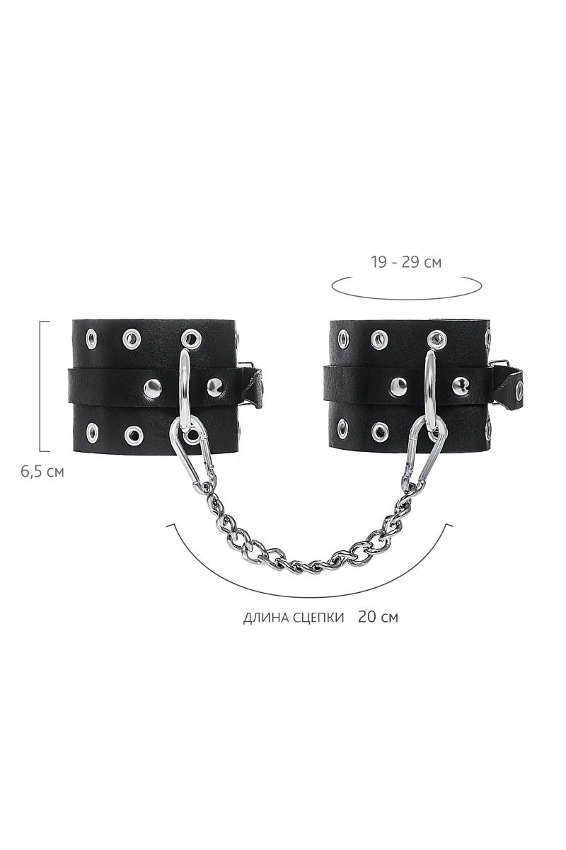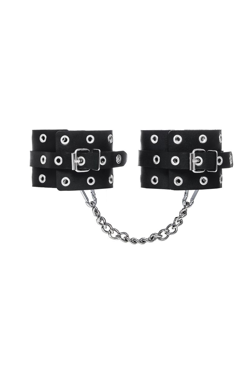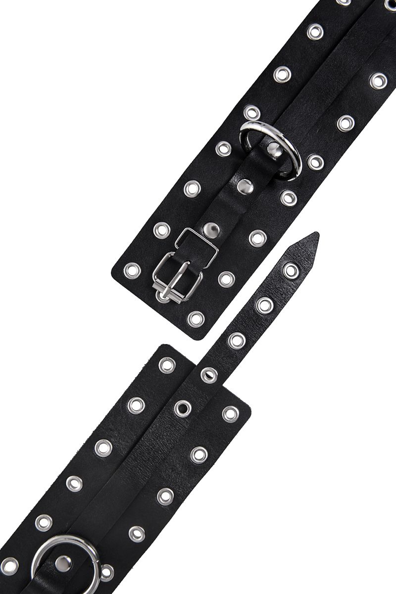 Оковы наручные 'Impirante' из натуральной кожи, черные, 5 люверсов, регулировка 19-29 см