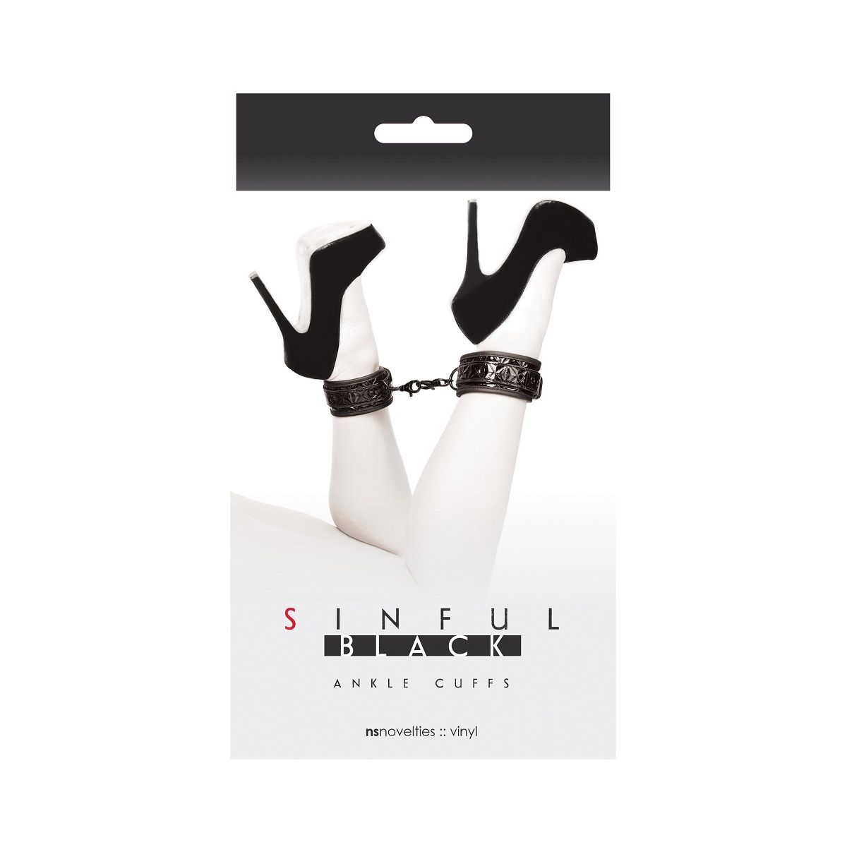 Черные манжеты на ноги "Sinful" — это стильный аксессуар для взрослых игр, сочетающий в себе фетиш-эстетику и продуманный комфорт. Глянцевая виниловая поверхность с рельефным геометрическим узором и детали из кожи создают дерзкий, сексуальный образ, а удобная конструкция позволяет сосредоточиться на ощущениях.