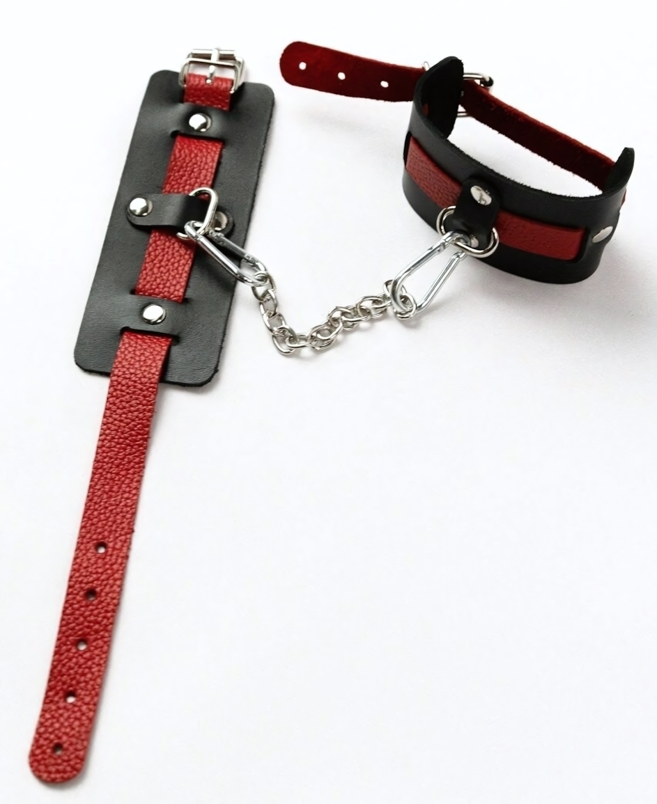 Погрузитесь в мир новых ощущений и ярких эмоций. Кожаные наручники с контрастным красным декором не только подчеркнут вашу индивидуальность, но и подарят незабываемые моменты.