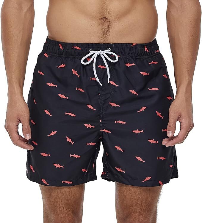 Пляжные шорты с акулами, черные/L, быстросохнущие, 100% полиэстер