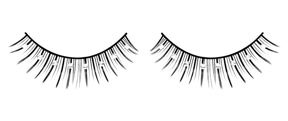 - Элегантный декор: Вдоль линии основы ресниц закреплены серебристые стразы, которые деликатно переливаются при свете, подчеркивая форму глаза и делая взгляд более ярким.