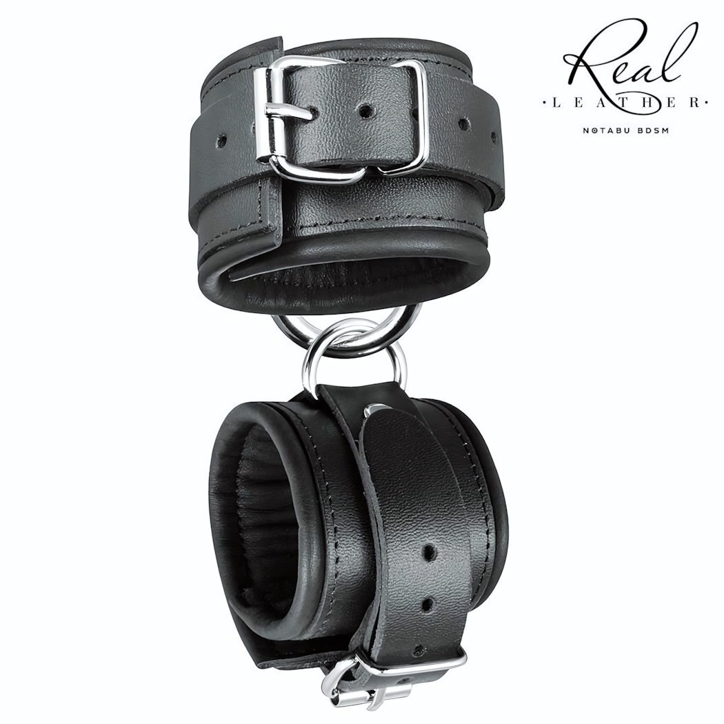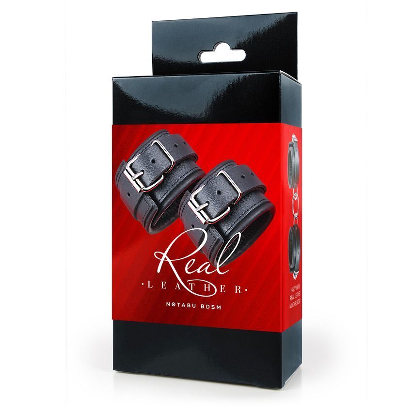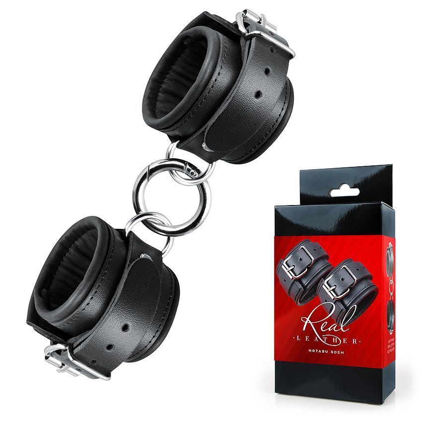 Наручники кожаные "NOTABU REAL LEATHER", регулируемые, с мягкой подкладкой, черные, натуральная кожа