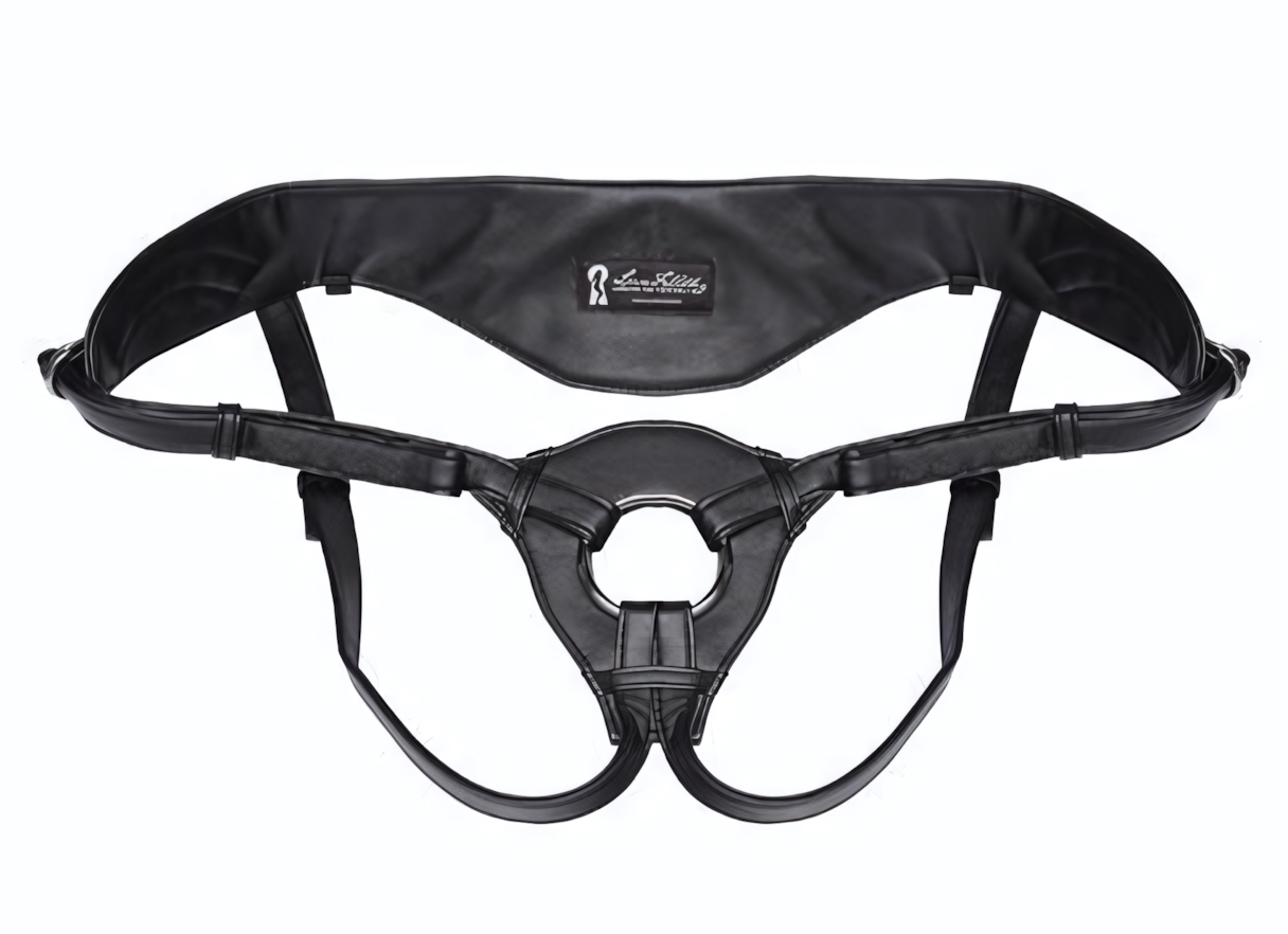 Трусики-джоки для страпона «Lux Fetish», черные, искусственная кожа, размер S-M-L, регулируемые ремни