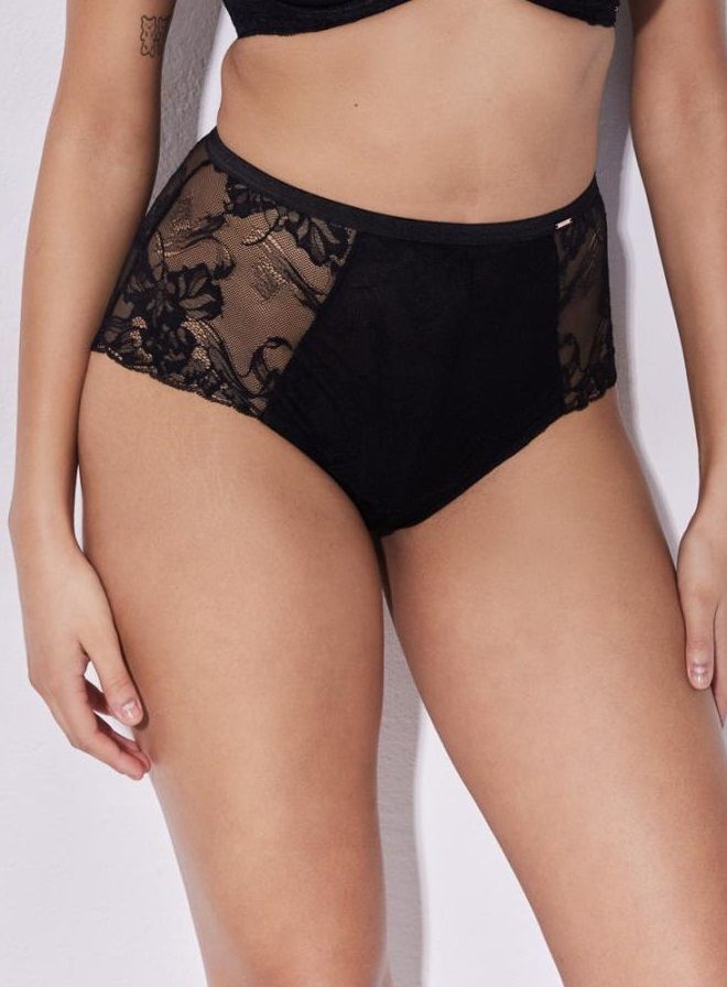 Черные трусики-слипы с высокой линией талии из коллекции "Sublime" созданы для тех, кто ценит комфорт и стиль. Изделие сочетает в себе утонченное кружево и практичность повседневной носки.